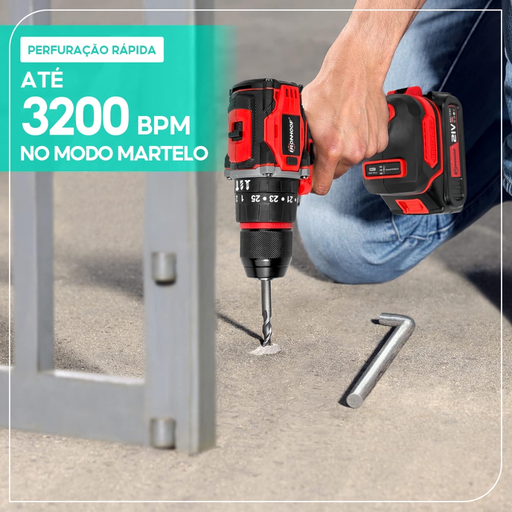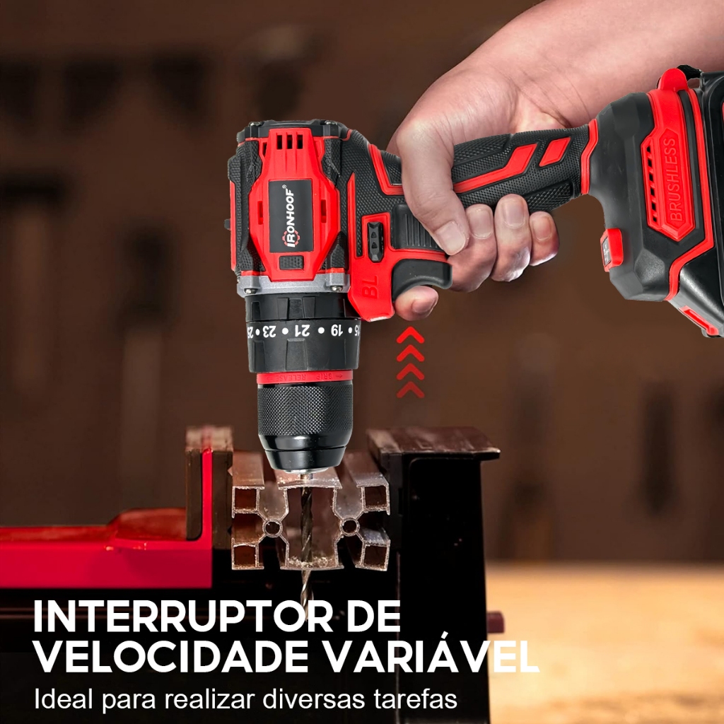 Furadeira Parafusadeira A Bateria Profissional Brushless Sem Fio Elétrica