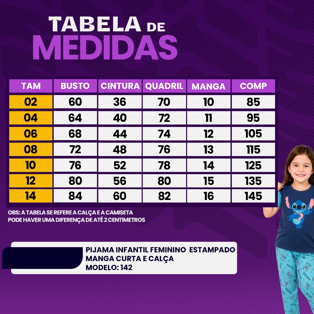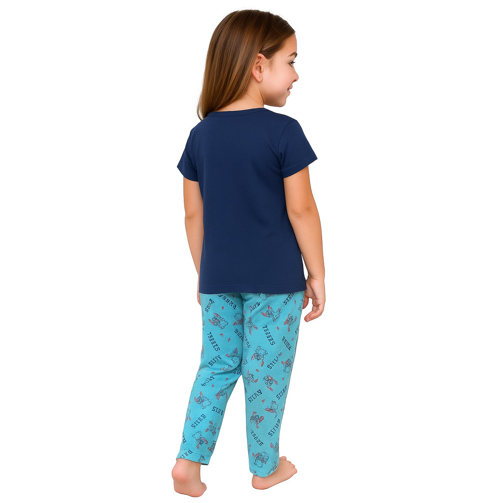 Pijama Infantil Feminino Inverno Meia Estação Lilo Stitch Estampado Malha PV Camisa e Calça