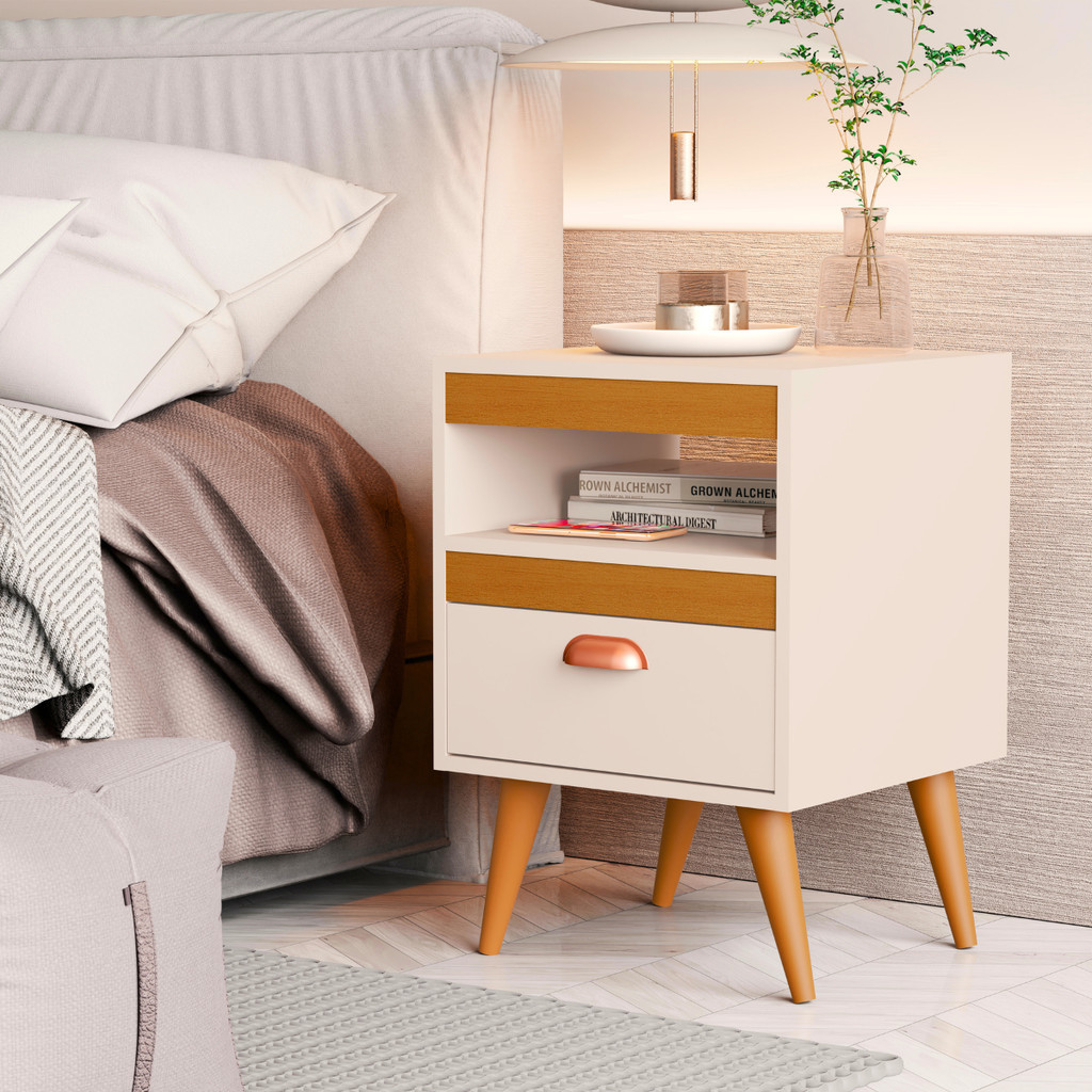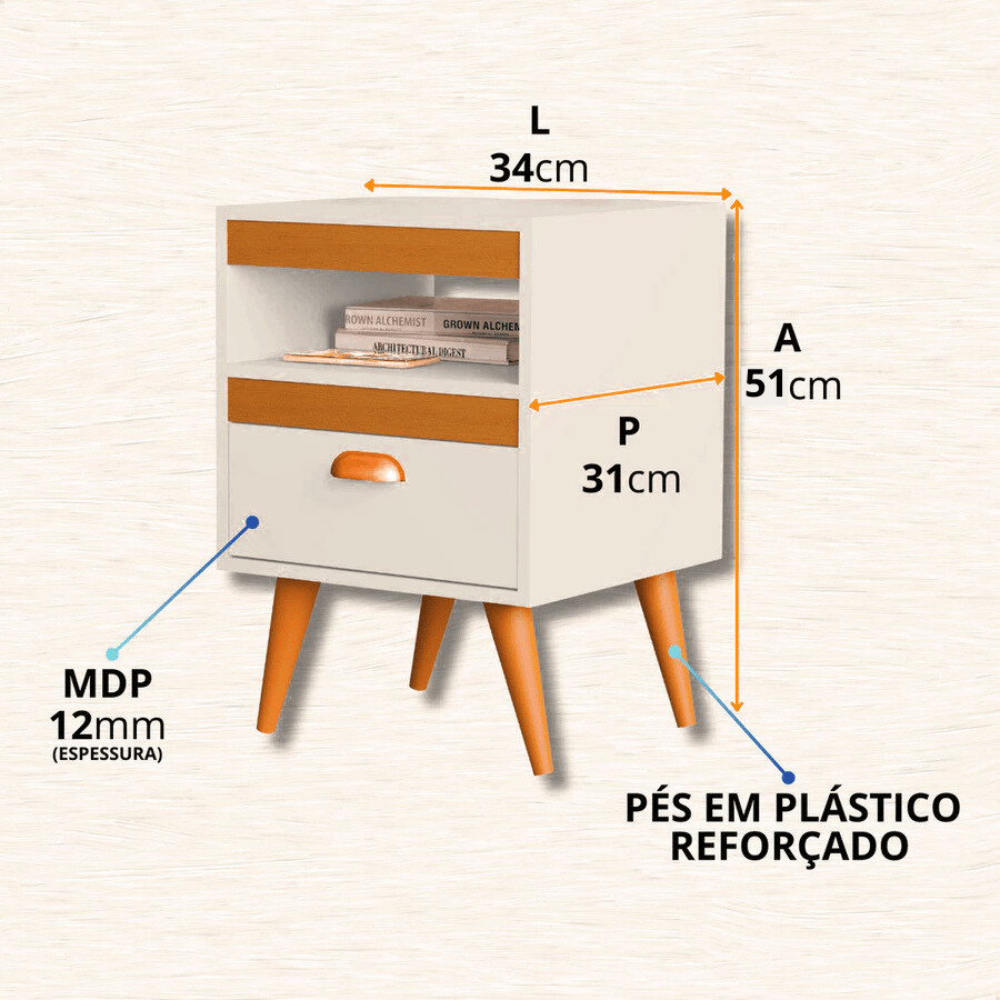 Kit 2 Mesa de Cabeceira PROMOÇÃO Quarto Criado Com Gaveta Puxador Pes de Polimero Nicho de Acessorio