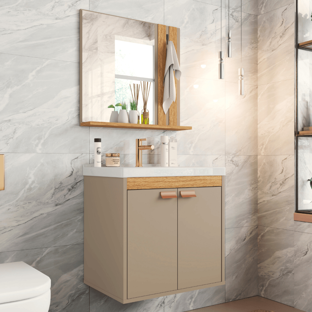 PROMOÇÃO Conjunto Gabinete Banheiro Pallas Espelho 47cm MDP 12mm Armario Espelheira e Cuba Kit Pia
