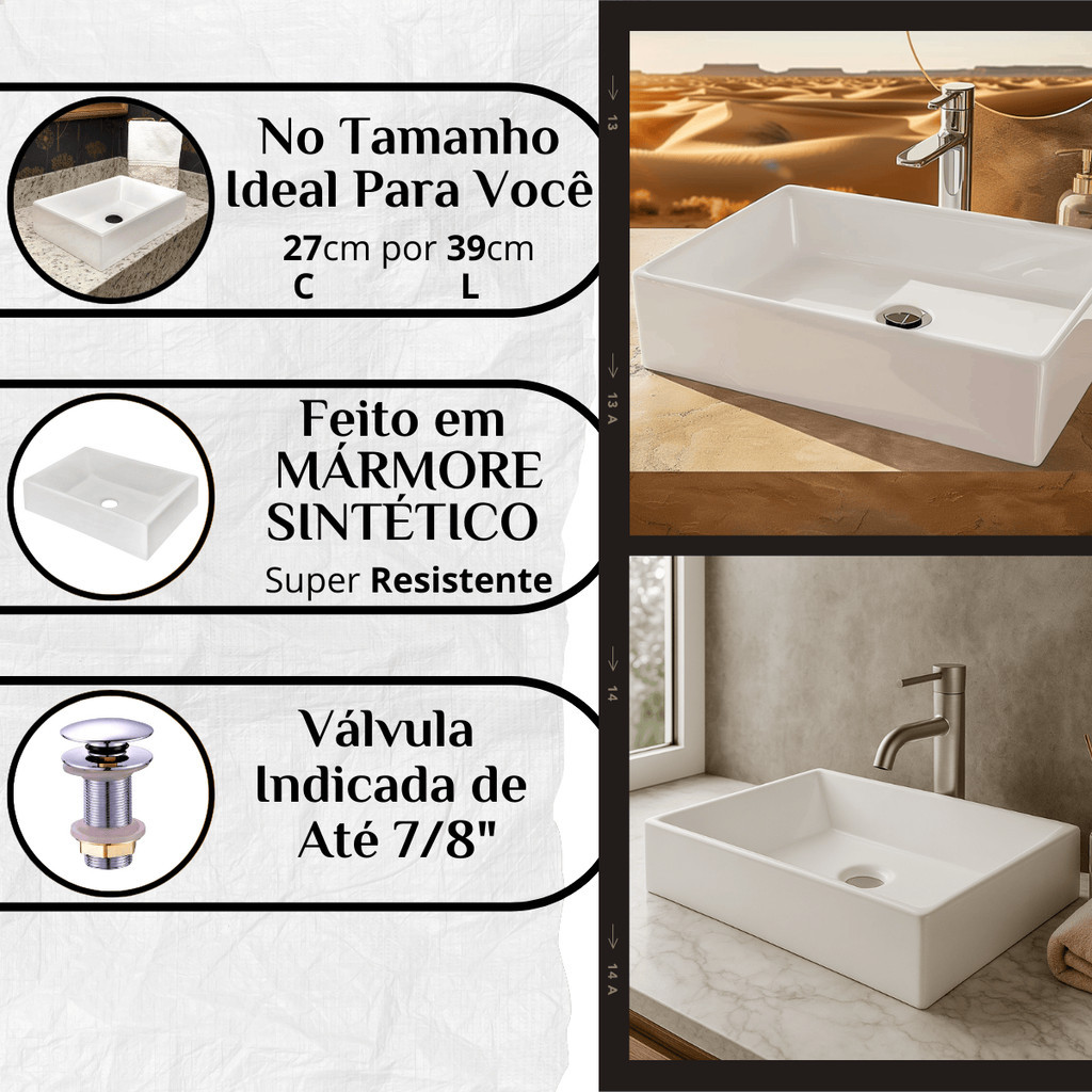 Pia Para Banheiro Cuba Sobrepor 40cm Retangular Lavabo Mármore Sintético Branca Promoção Imperdível