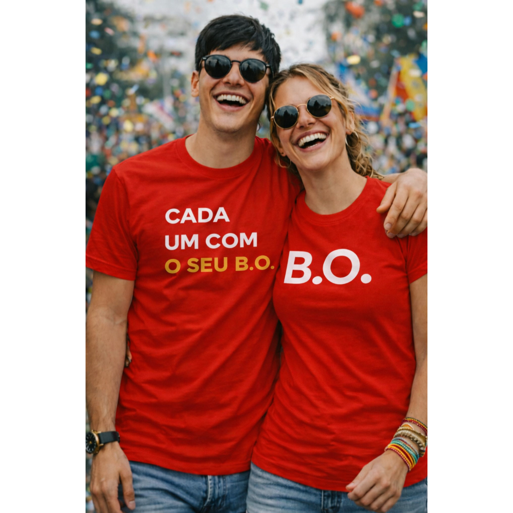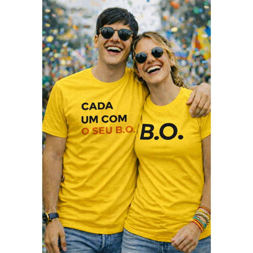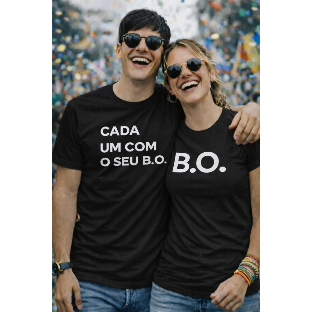 Kit Casal Camisa Conjunto Frase Engraçada Cada um com seu B.O Lançamento