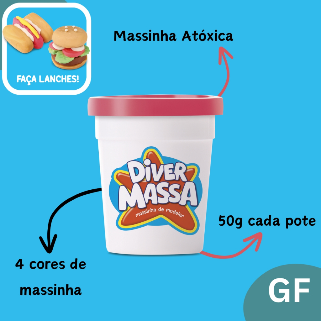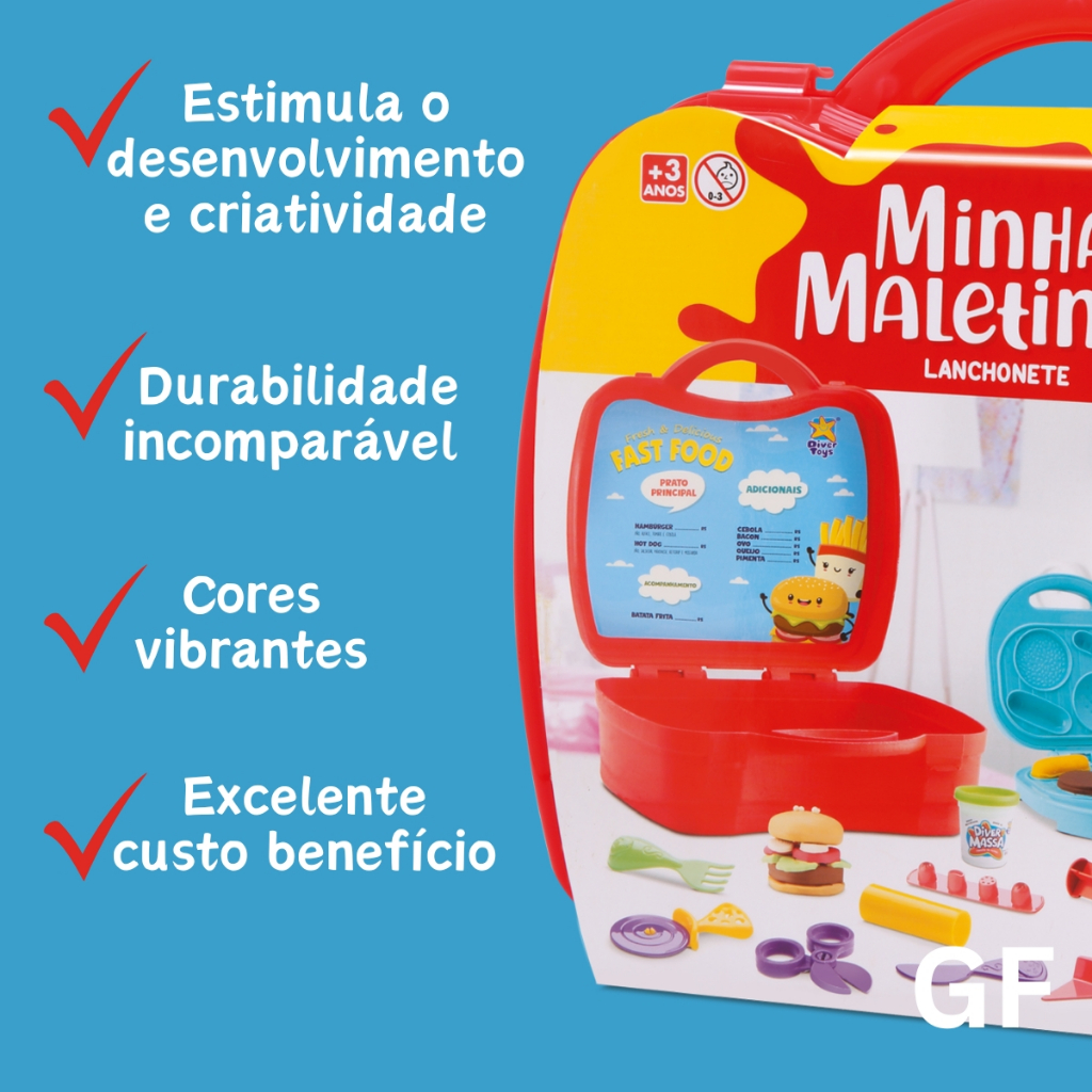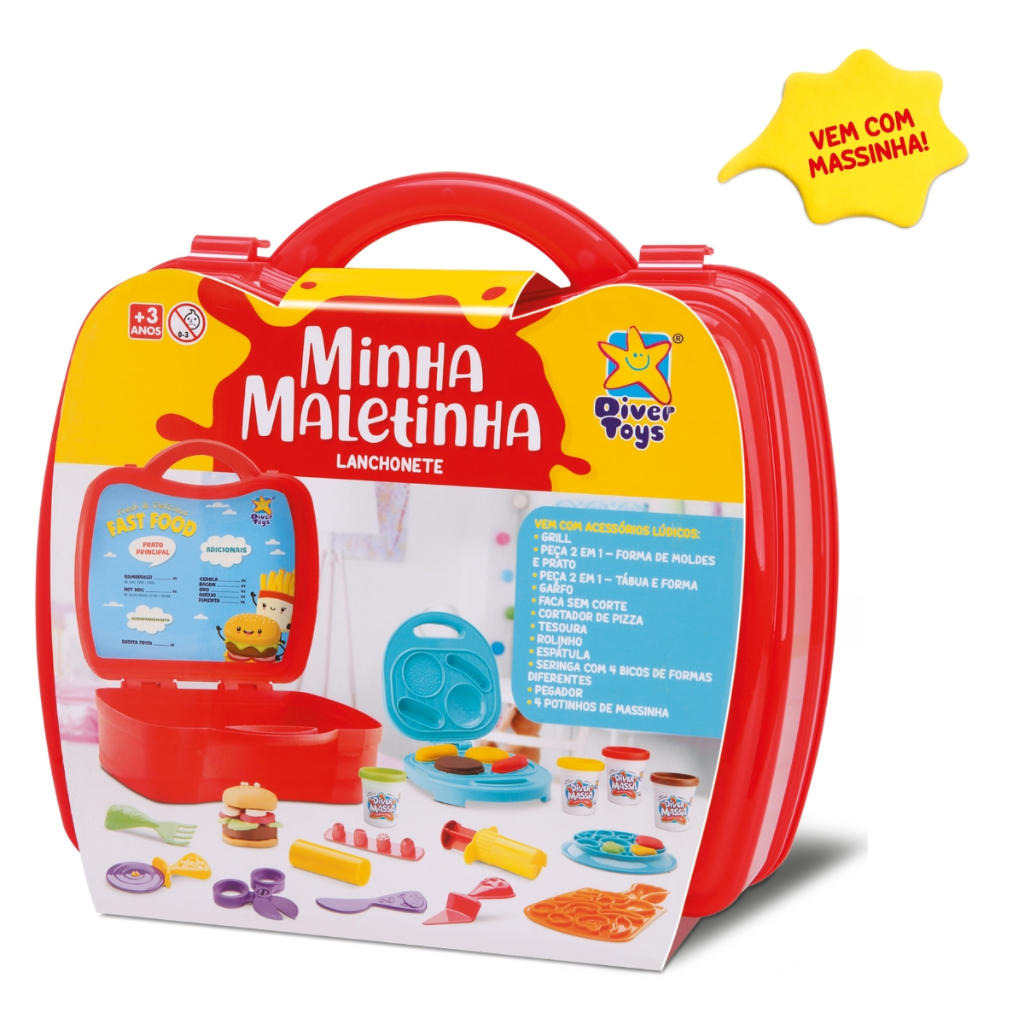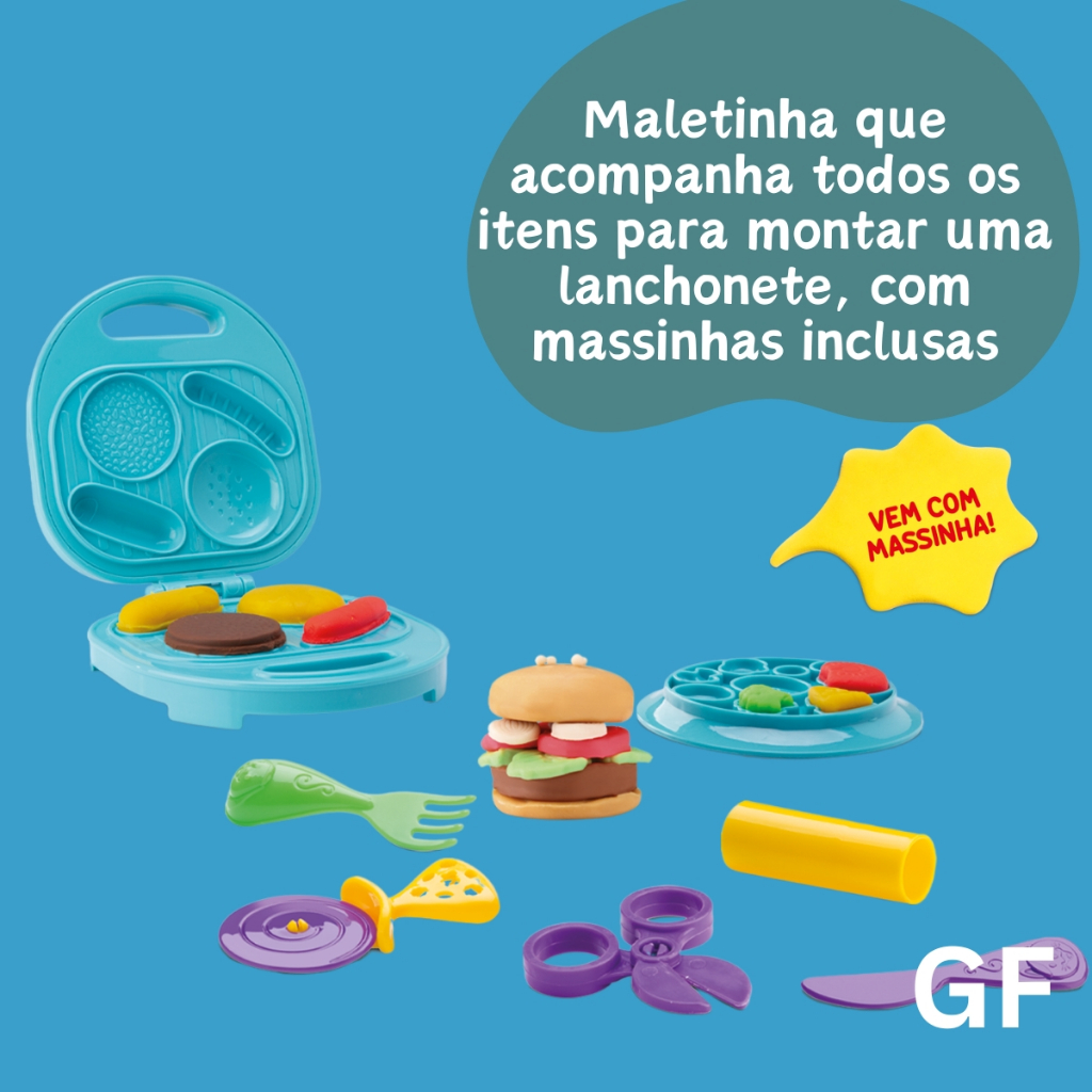 Playset Minha Maletinha Lanchonete com 4 Massinhas Divertoys Kit Completo para Fazer Lanches Atóxico