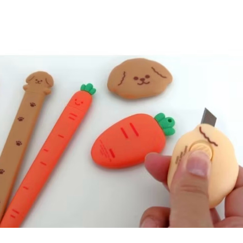 Kit 2 Estiletes Cenoura Cachorro Kawaii Estilete Importado Papelaria Importado