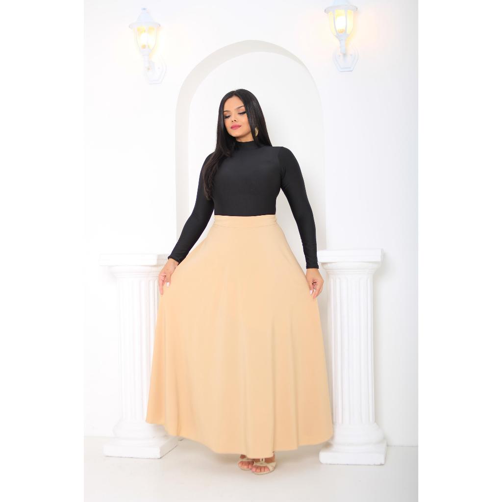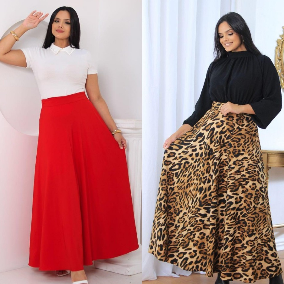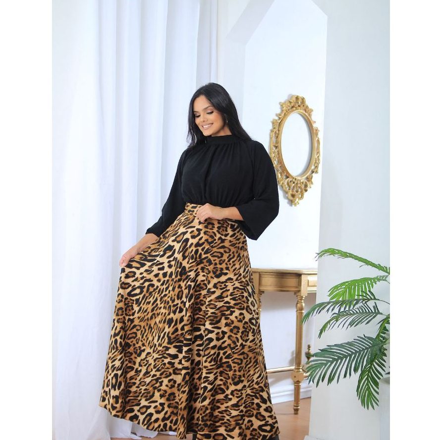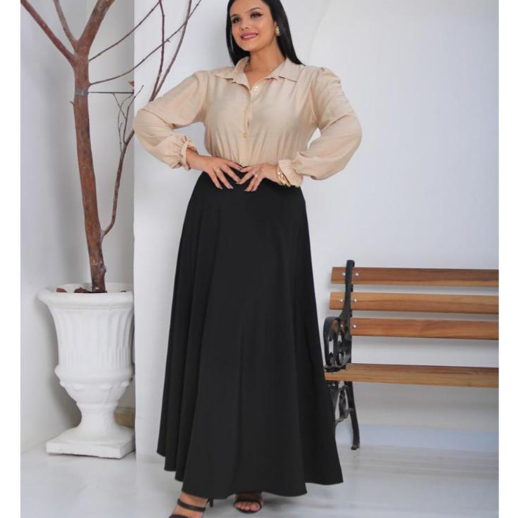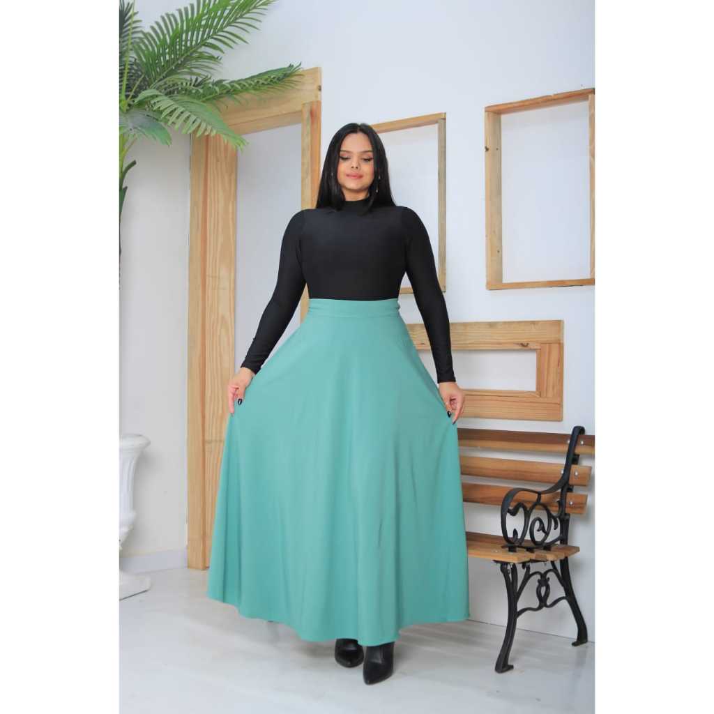 saia envelope longa traspasada com amarração elegante tecido crepinho forrado na moda evagelica