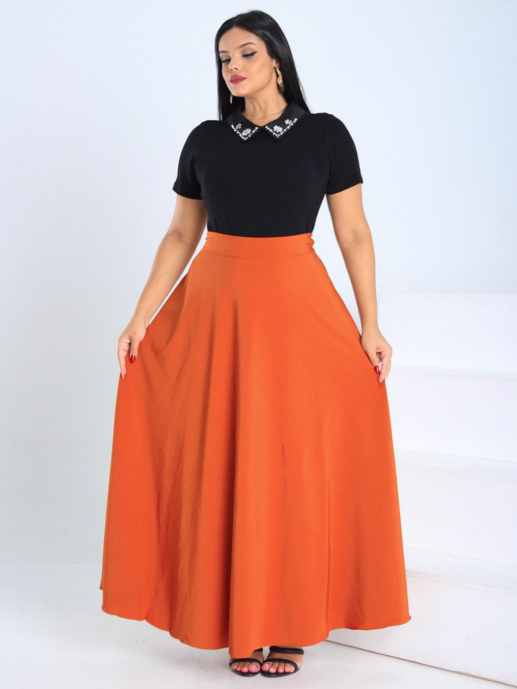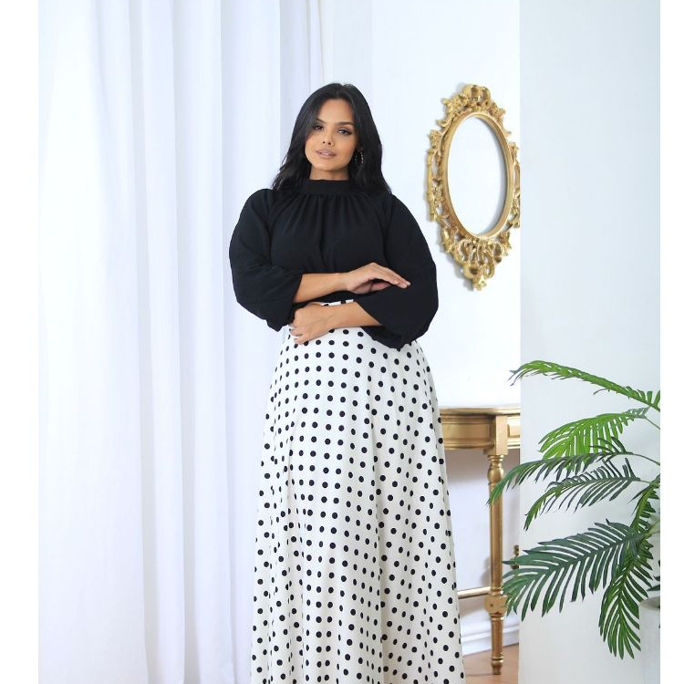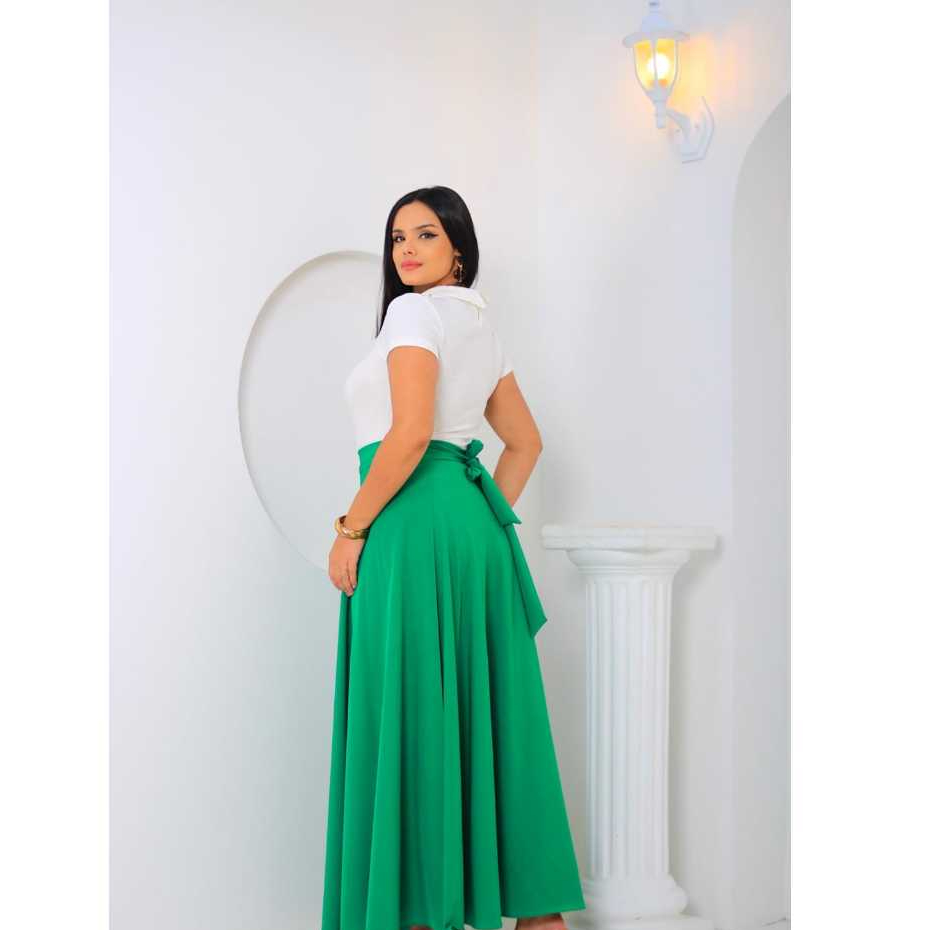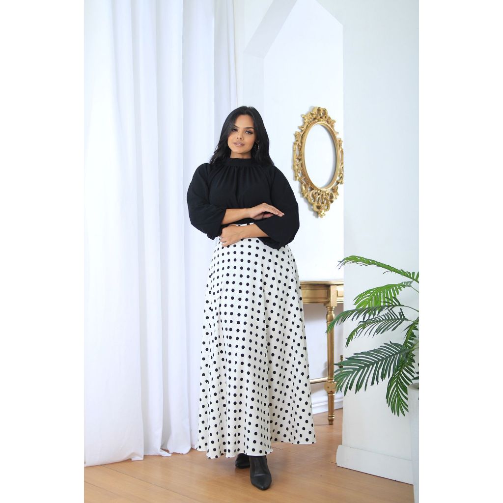saia envelope longa traspasada com amarração elegante tecido crepinho forrado na moda evagelica