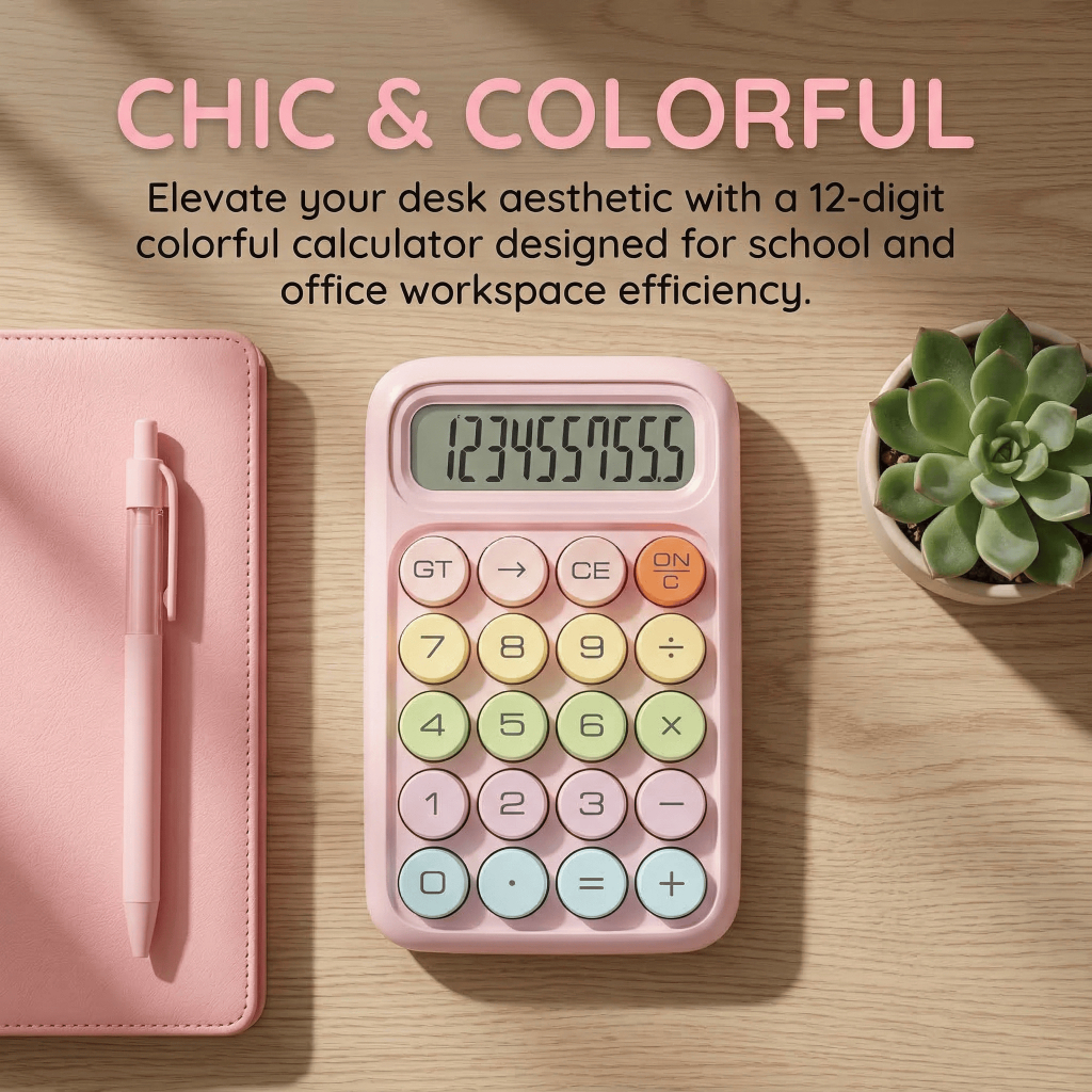 Calculadora Colorida 12 Dígitos com Teclas Grandes para Escola e Escritório