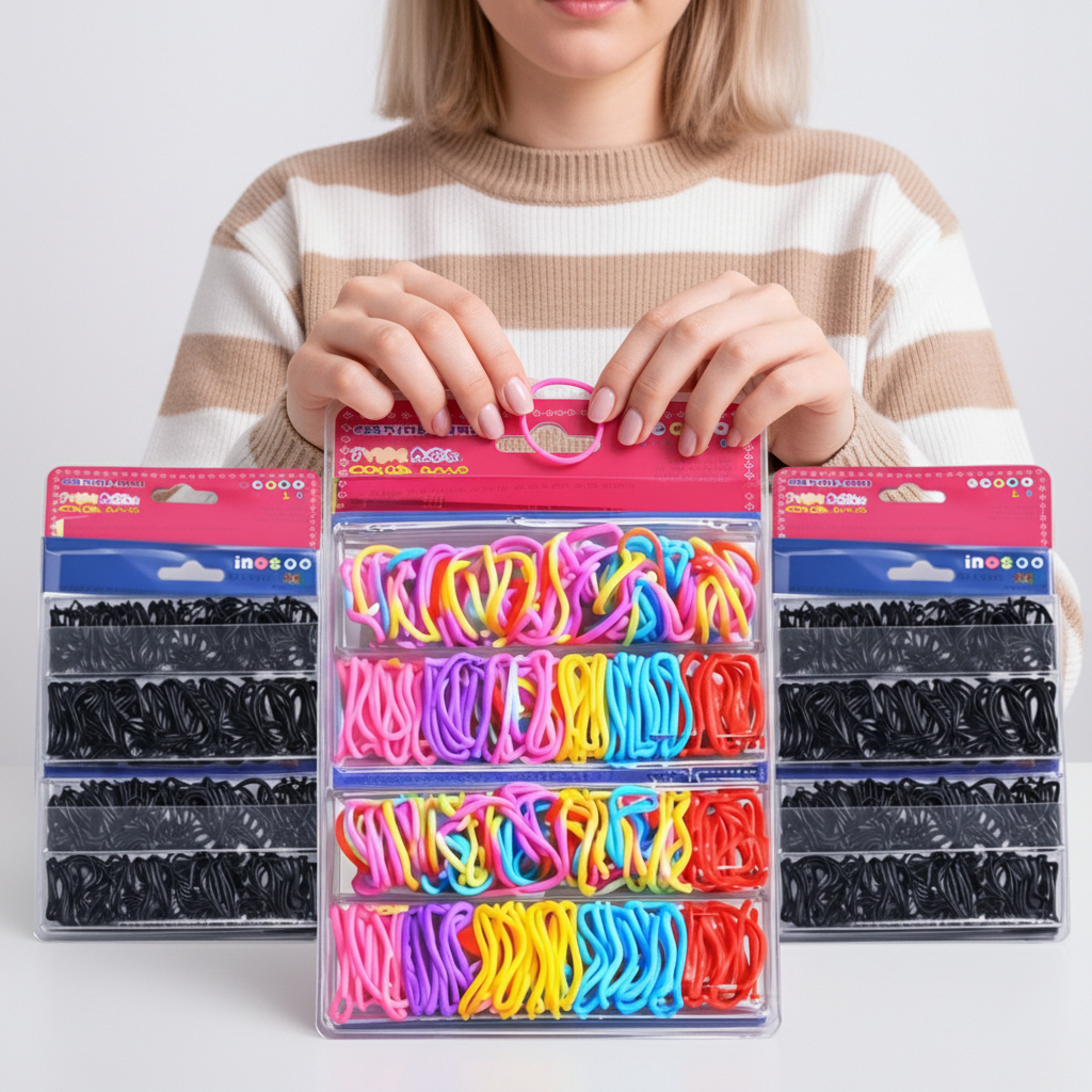 Elásticos de Silicone Coloridos para Cabelo – Cartela com 5 Compartimentos, Uso Diário