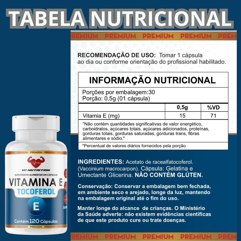 Vitamina E 120 Cáps 500mg – Original - Suporte e Equilíbrio Diário