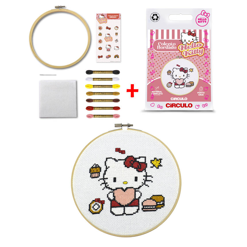 KIT Coleção Bordado Ponto Cruz Hello Kitty - CÍRCULO