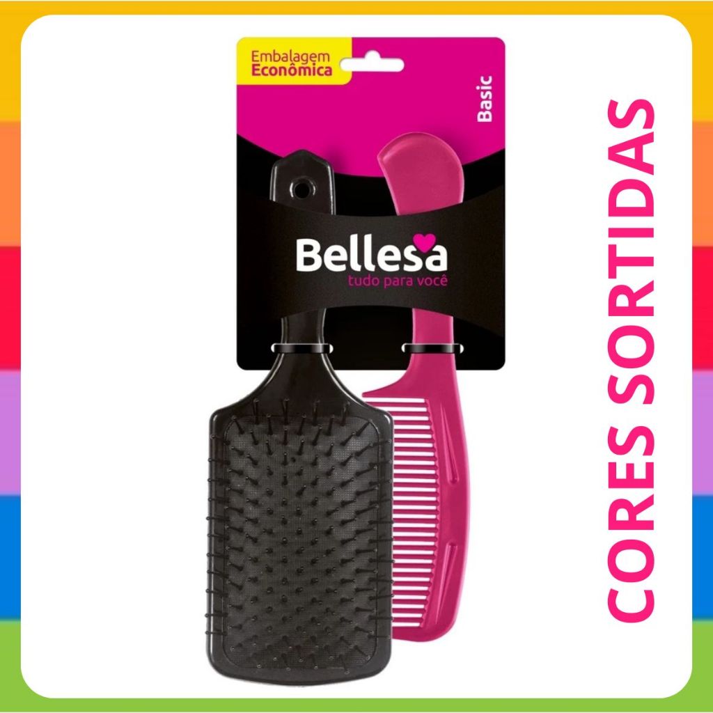 Kit Escova Raquete+ Pente Largo Bellesa Embalagem Econômica