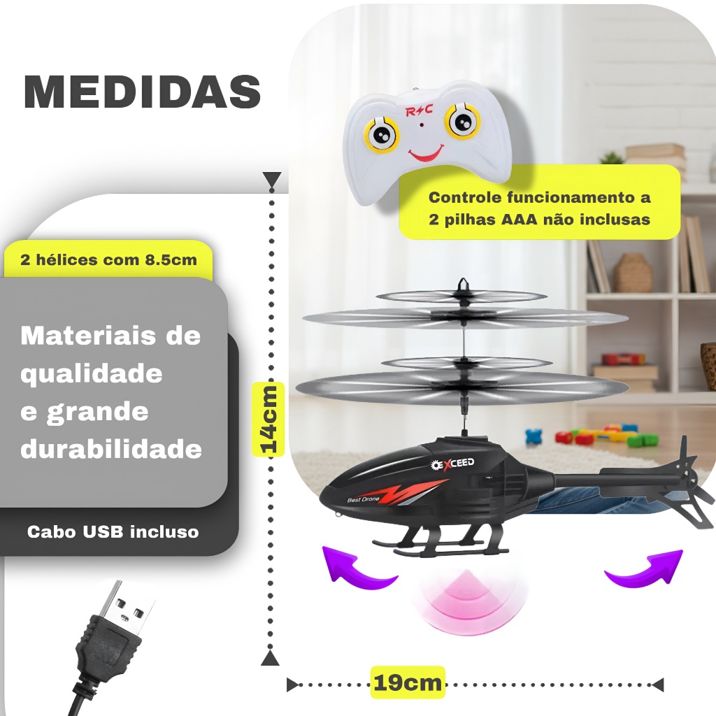 Helicóptero Controle Remoto Brinquedo Sensor de Mão USB Recarregável