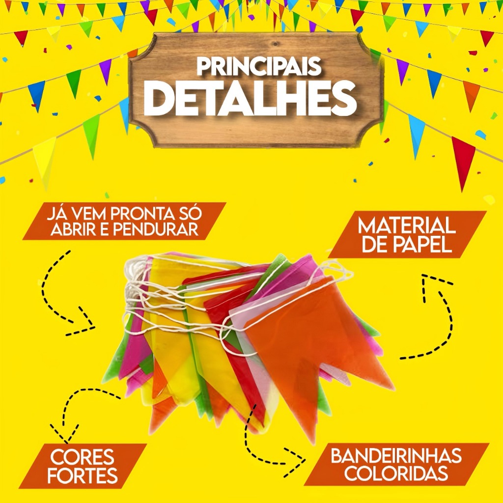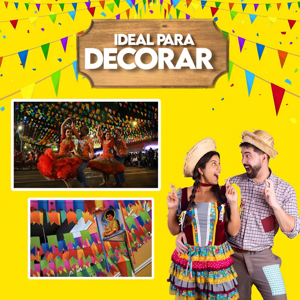 Kit 100 Bandeirinhas Festa Junina Plástico Decoração São João Bandeirola Colorida