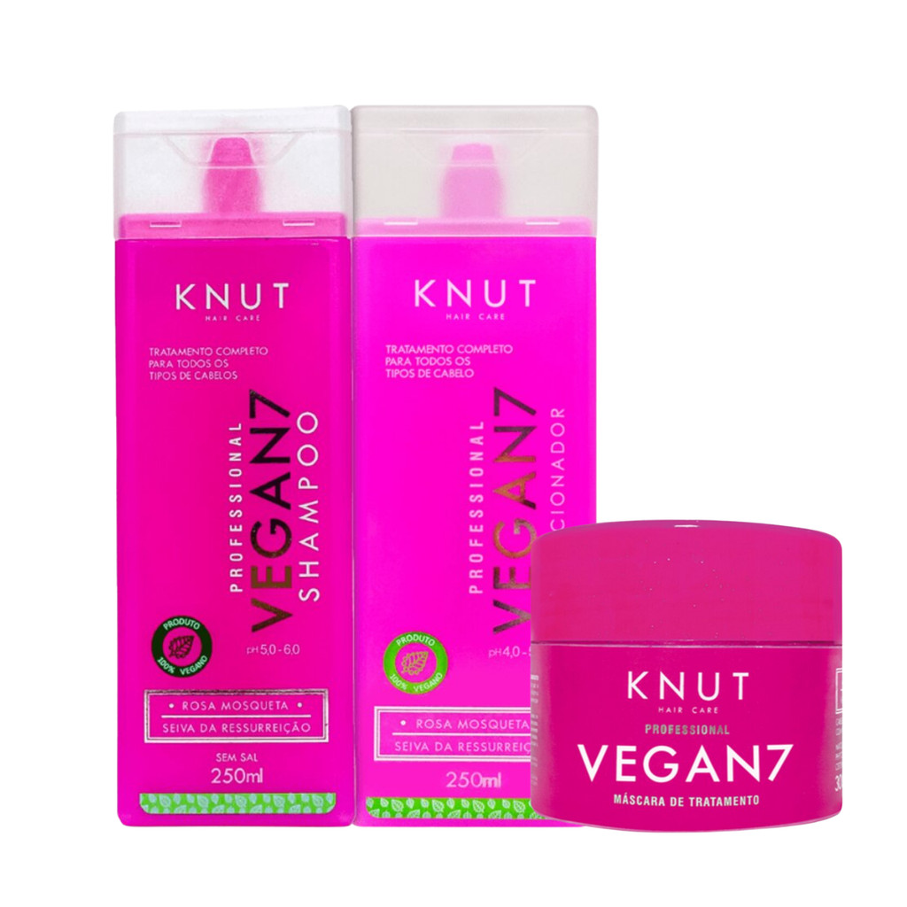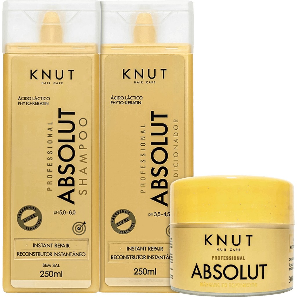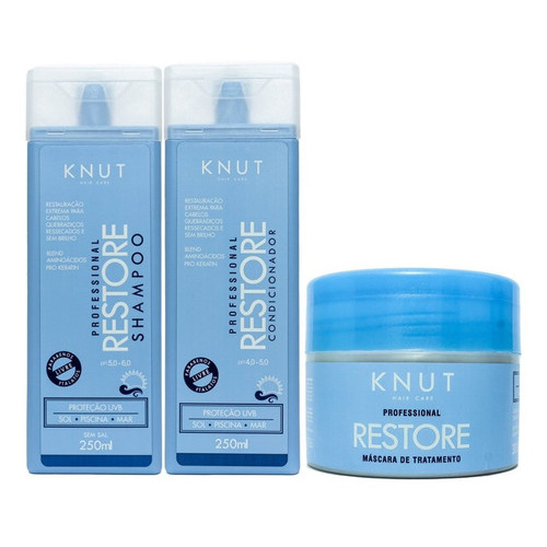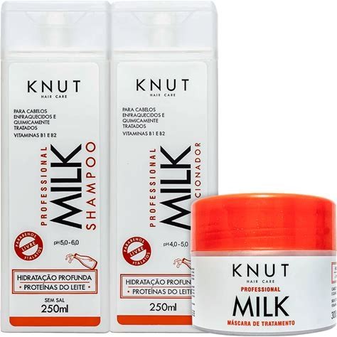 Kit Shampoo + Condicionador 250ml + Máscara 300g Knut (Milk K-Force Restore Vegan7 Menta Pimenta Intensive Care Cachos)
