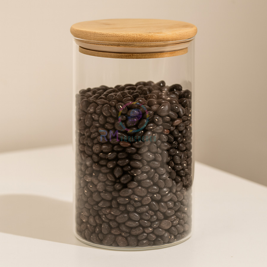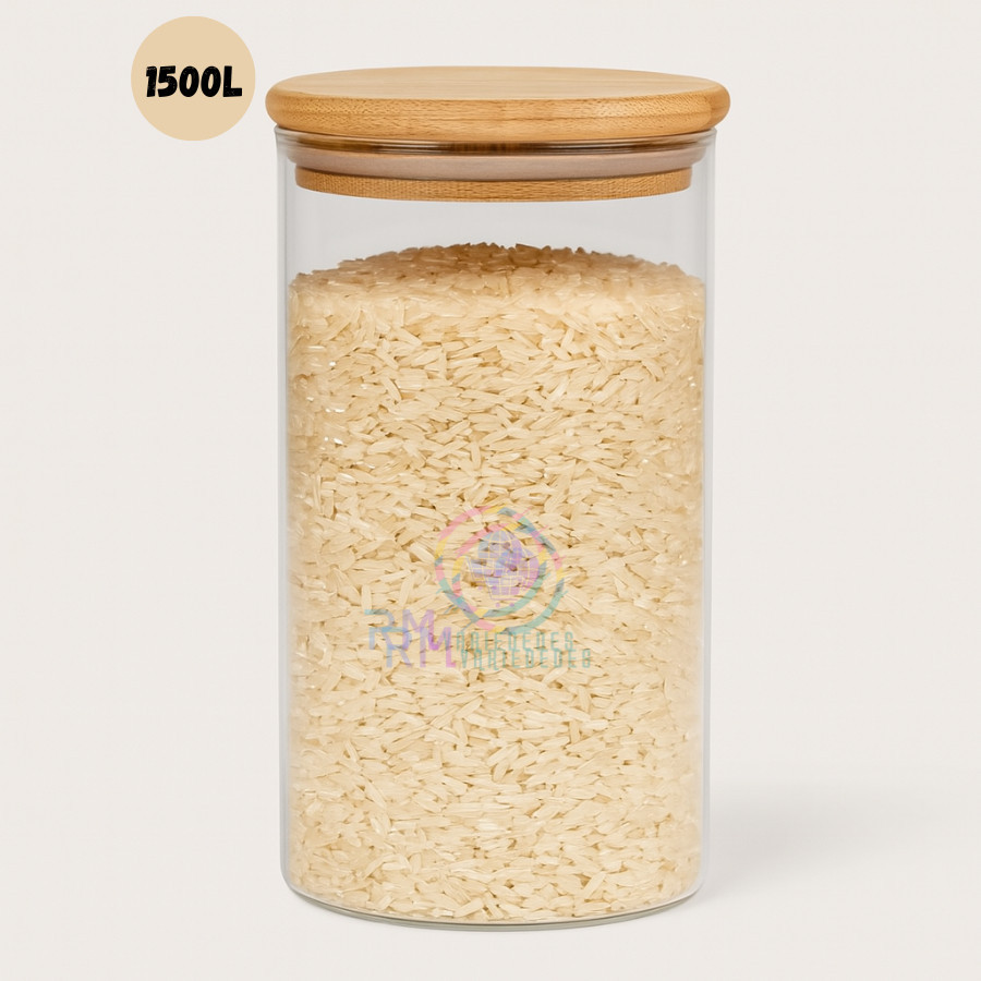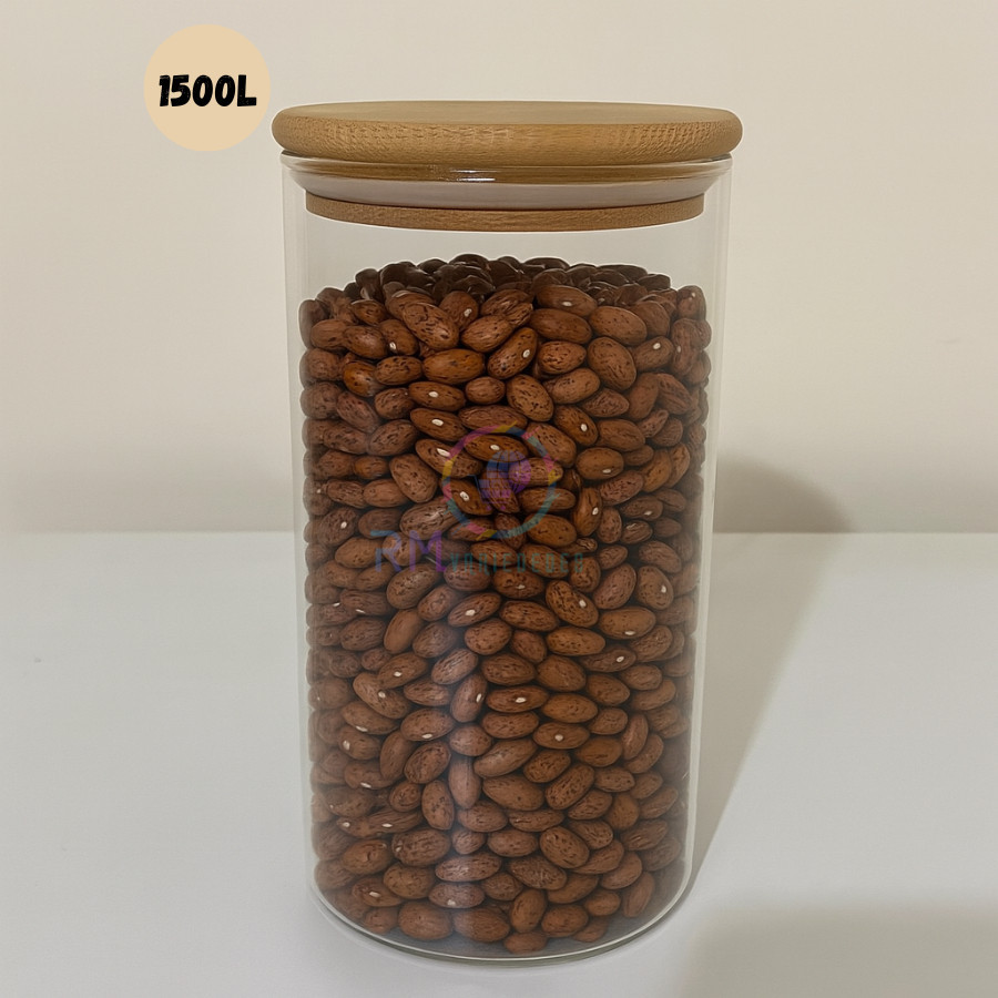 Pote De Vidro Hermético Tampa De Bambu - Para Alimentos Temperos Redondo 1500L
