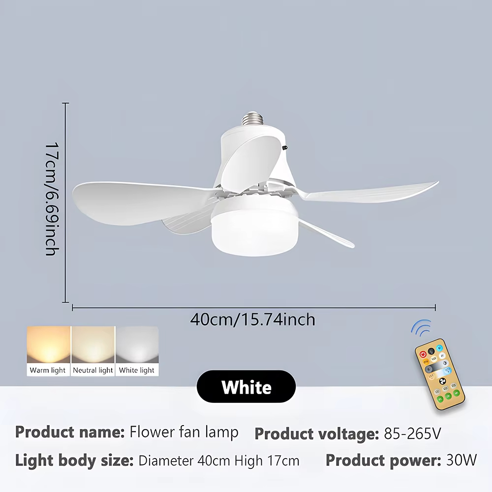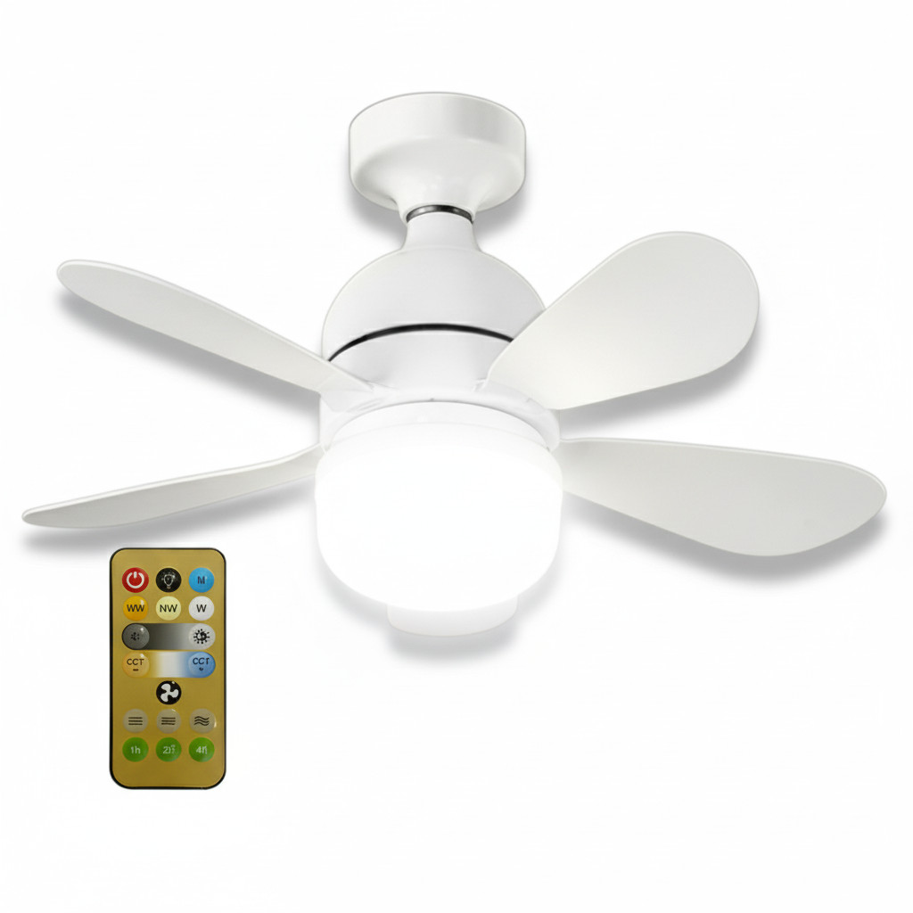 Kit 2 Ventilador 80W 5 Hélices Teto Potente Controle Remoto led Regulável 3 cores E27 Silencio Inteligente Ventila Forte