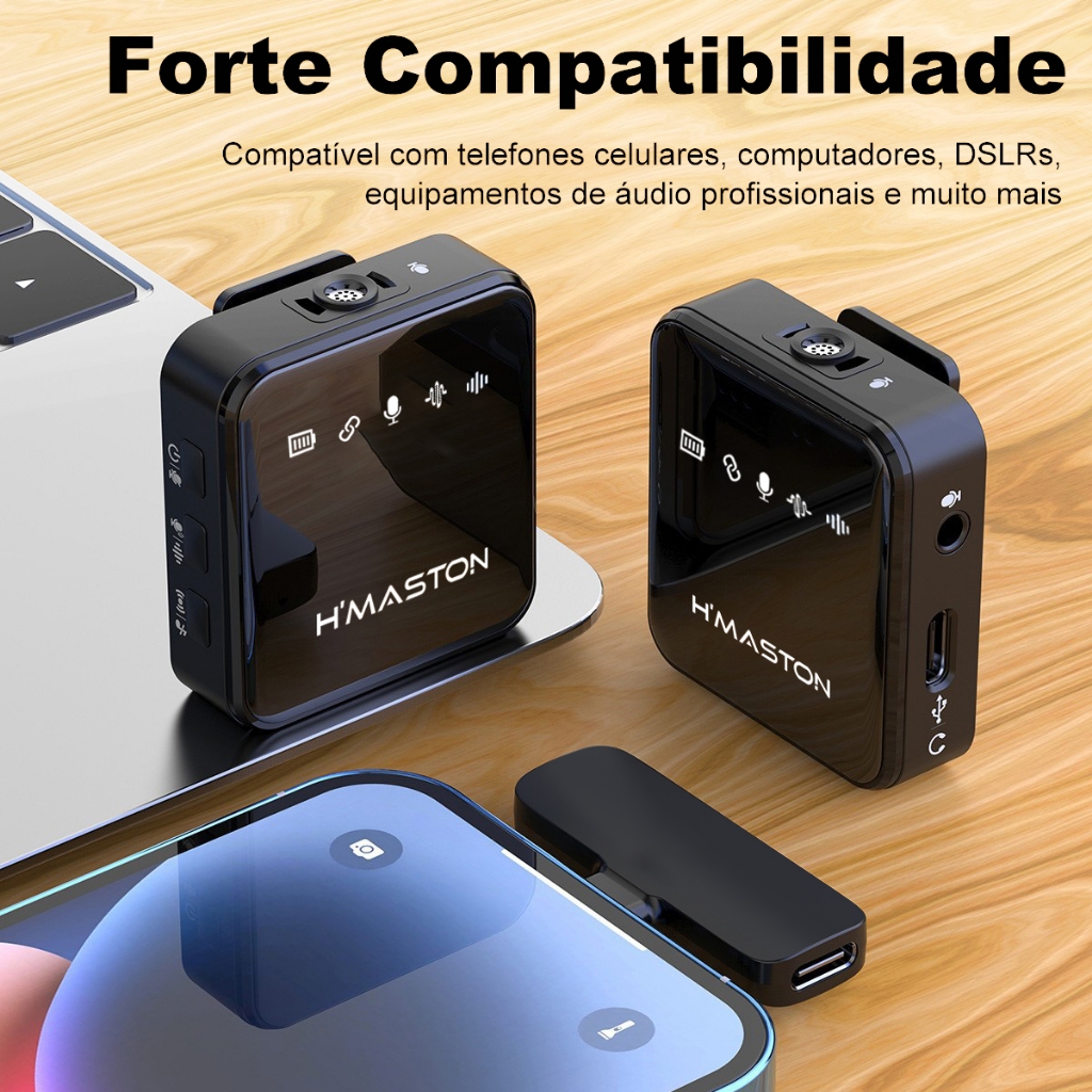H'maston MK13/14 Microfone Sem Fio Lapela Anti Ruído Duplo Profissional Para Tipo-C e Lighting