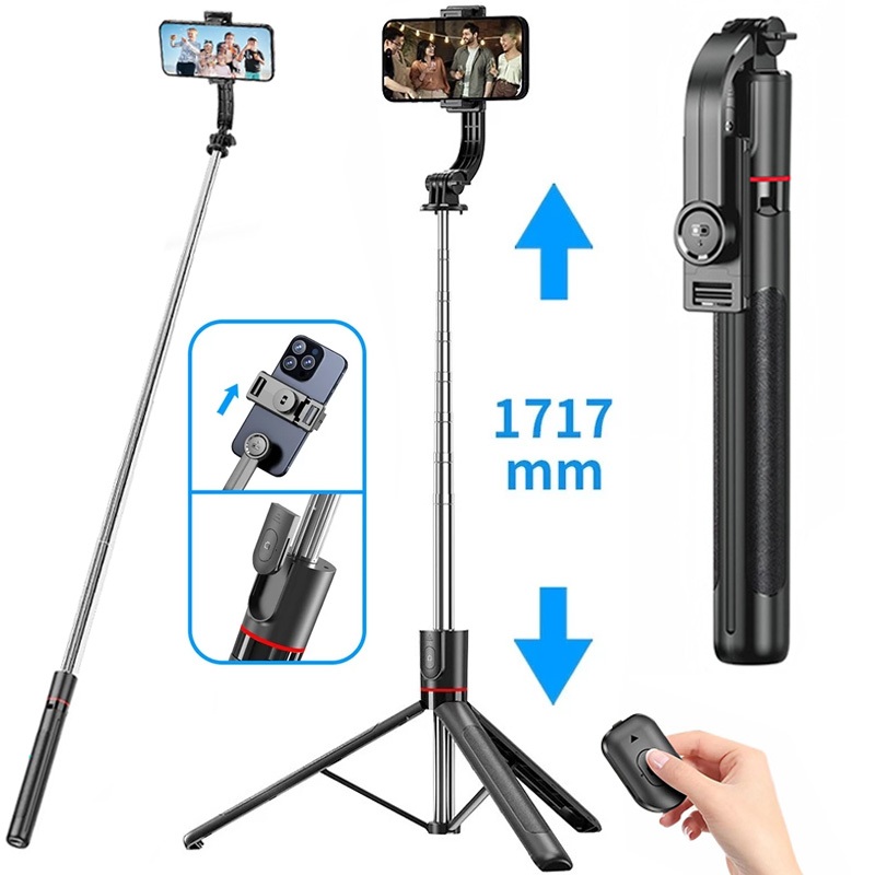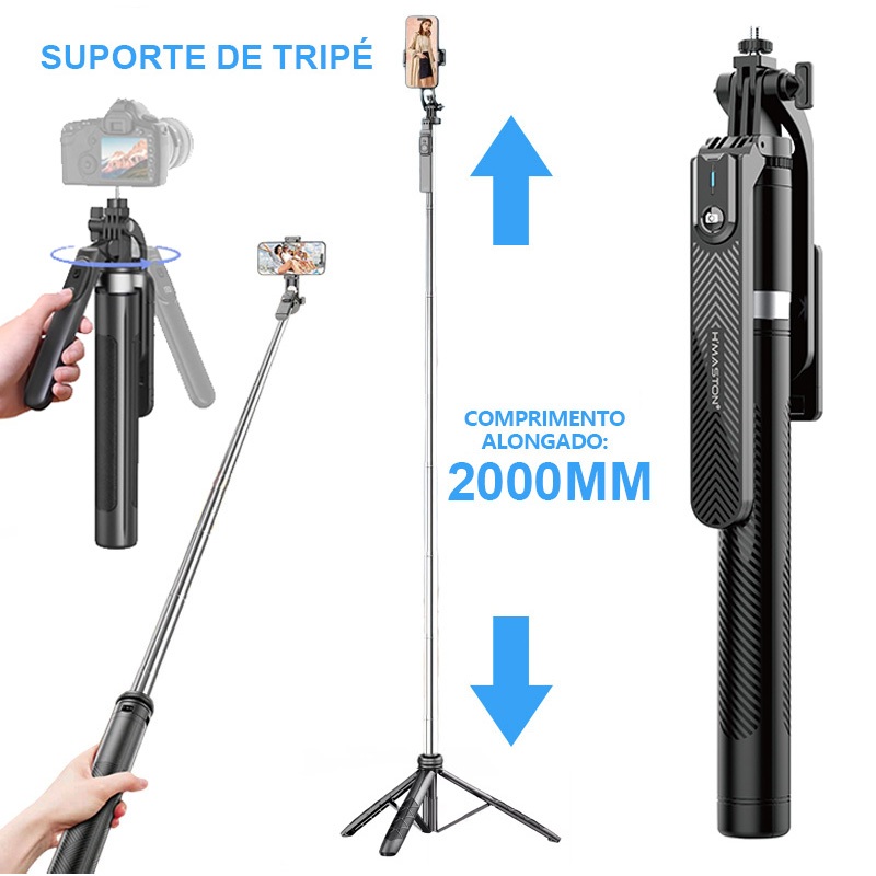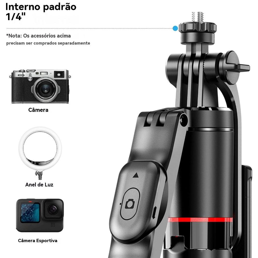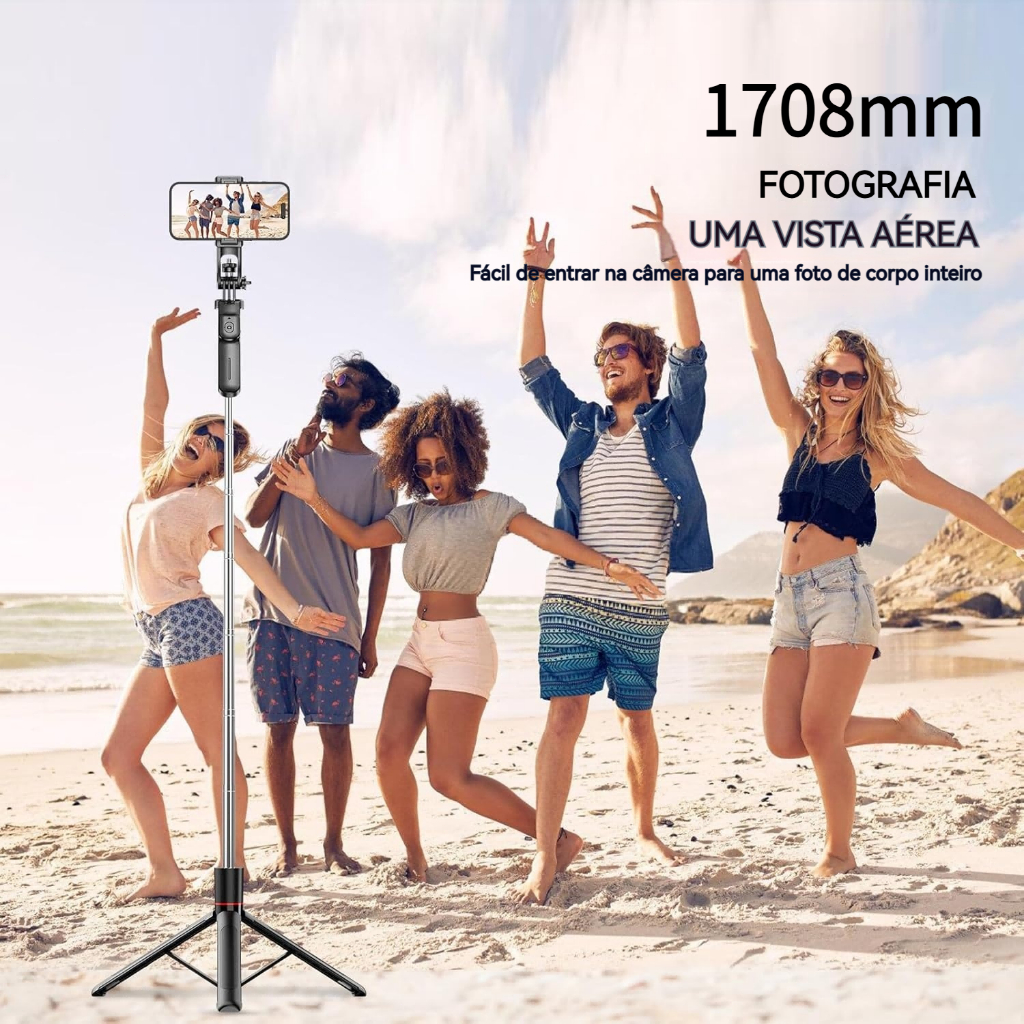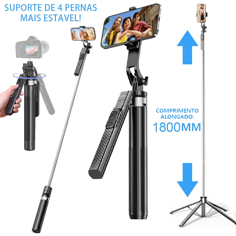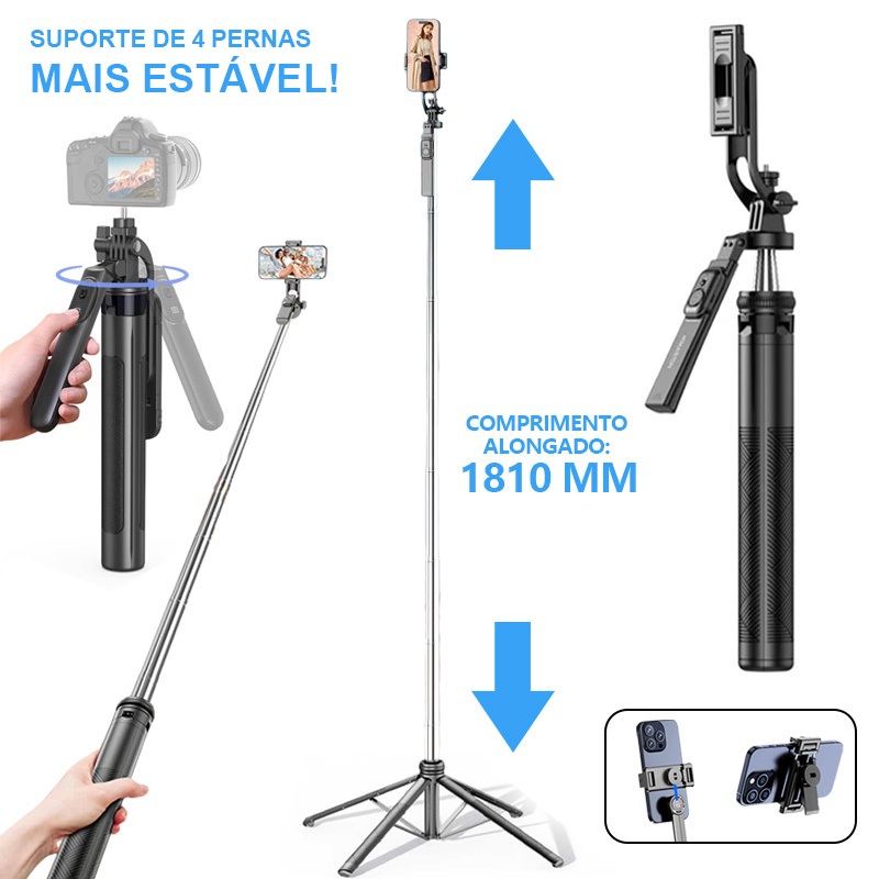 Selfie Stick Tripé 1.7M/1.8M/2M, 4 Eixos 360° Rotação Anti-tremor+ Controle Bluetooth Sem Fio para Vlog