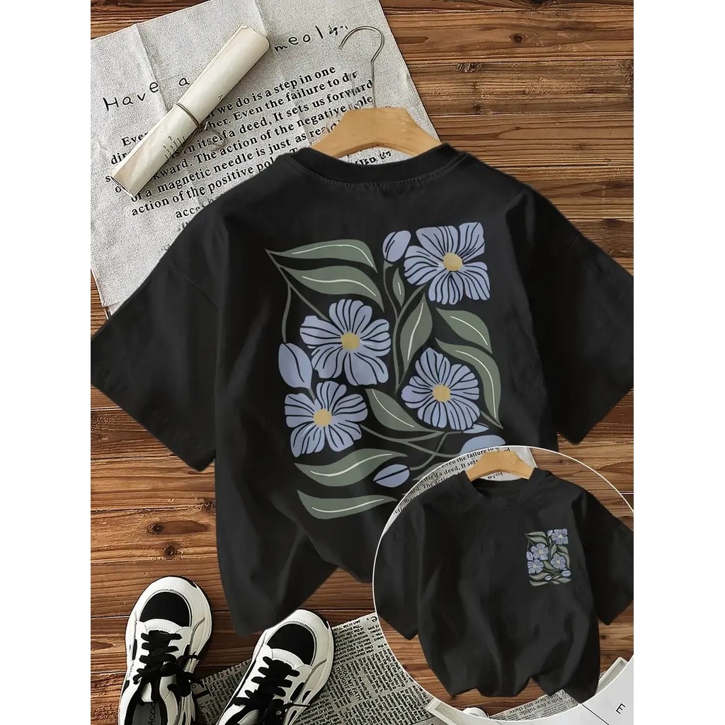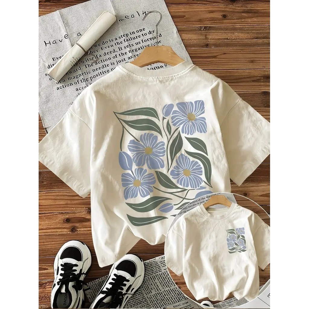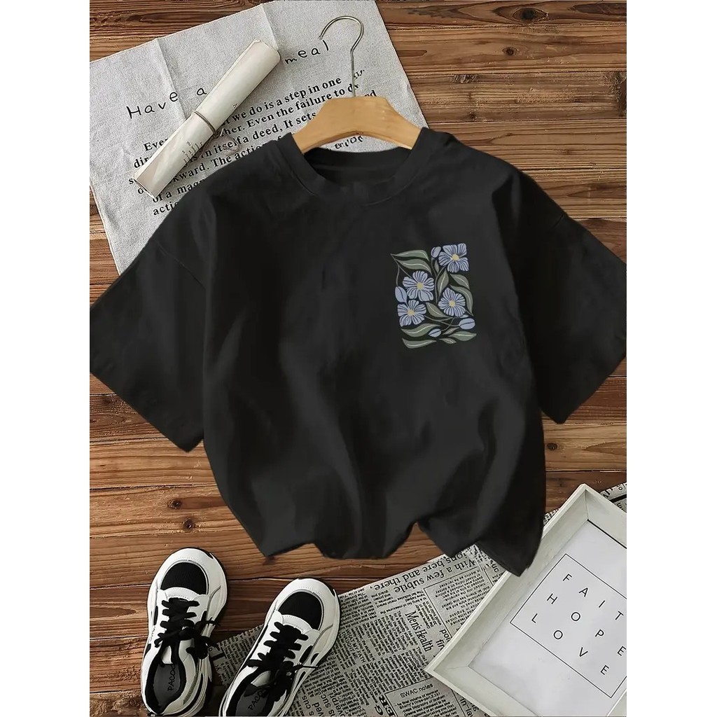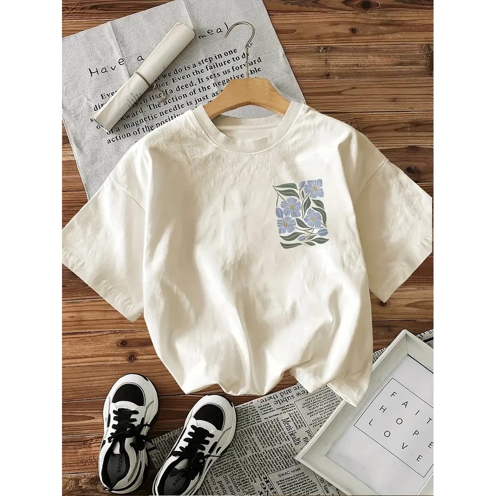 Camiseta Feminina Floral Azul Tropical 100% Algodão Premium 2