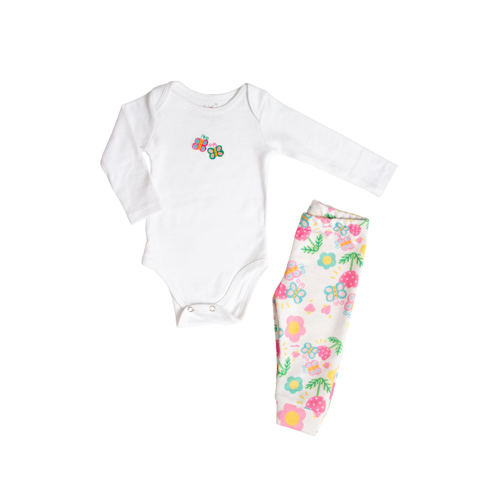 Conjunto Calça e Body Manga Longa Borboletinhas