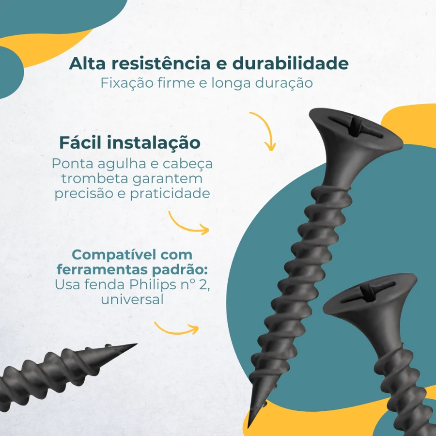 Kit Parafusos GN25 Drywall Trombeta 3,5x25mm Ponta Agulha Peças Para Gesso, Madeira, Móveis