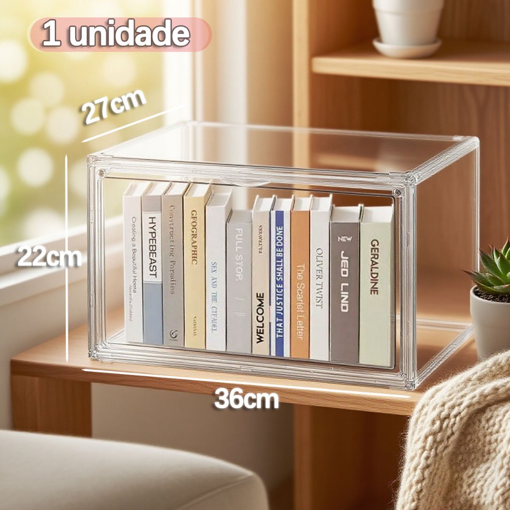 Caixa Organizadora de Livros Acrílico Grande Capacidade Transparente com Tampa Exibição Proteção Contra Poei