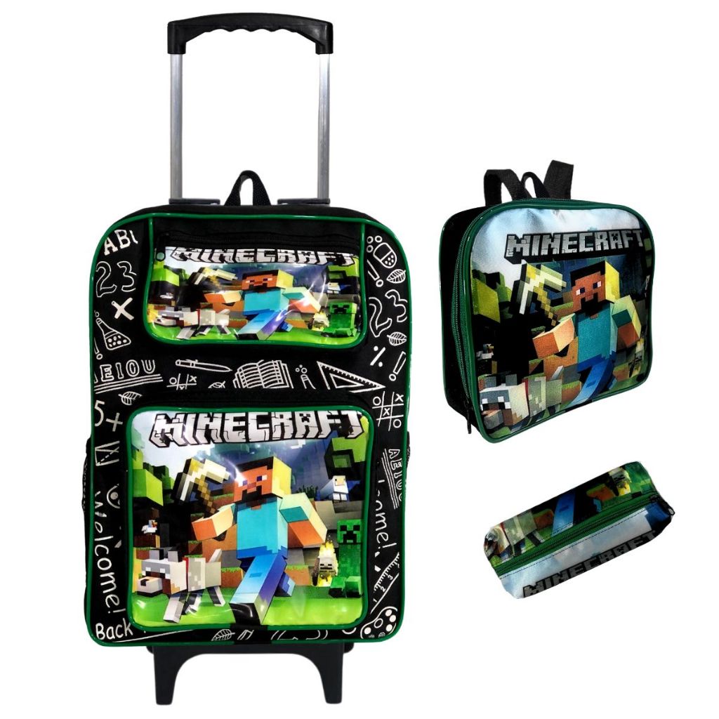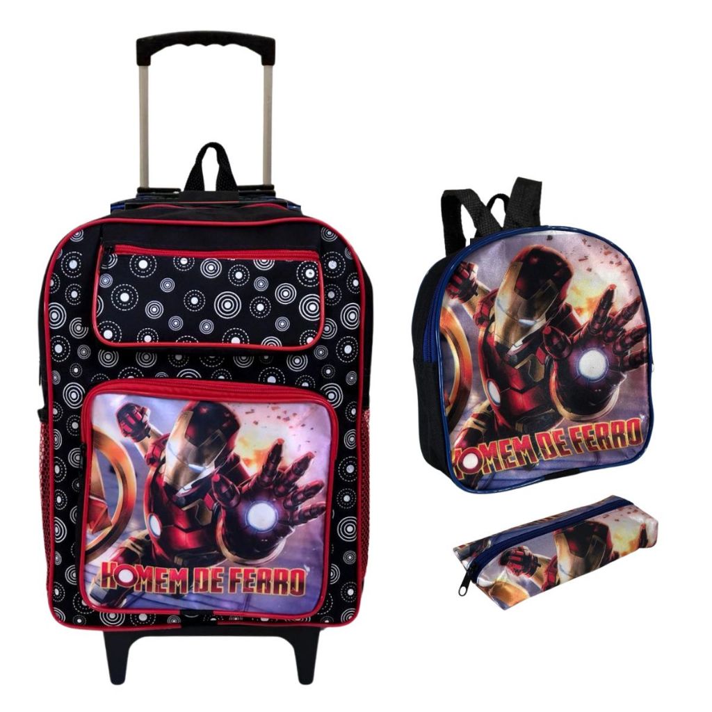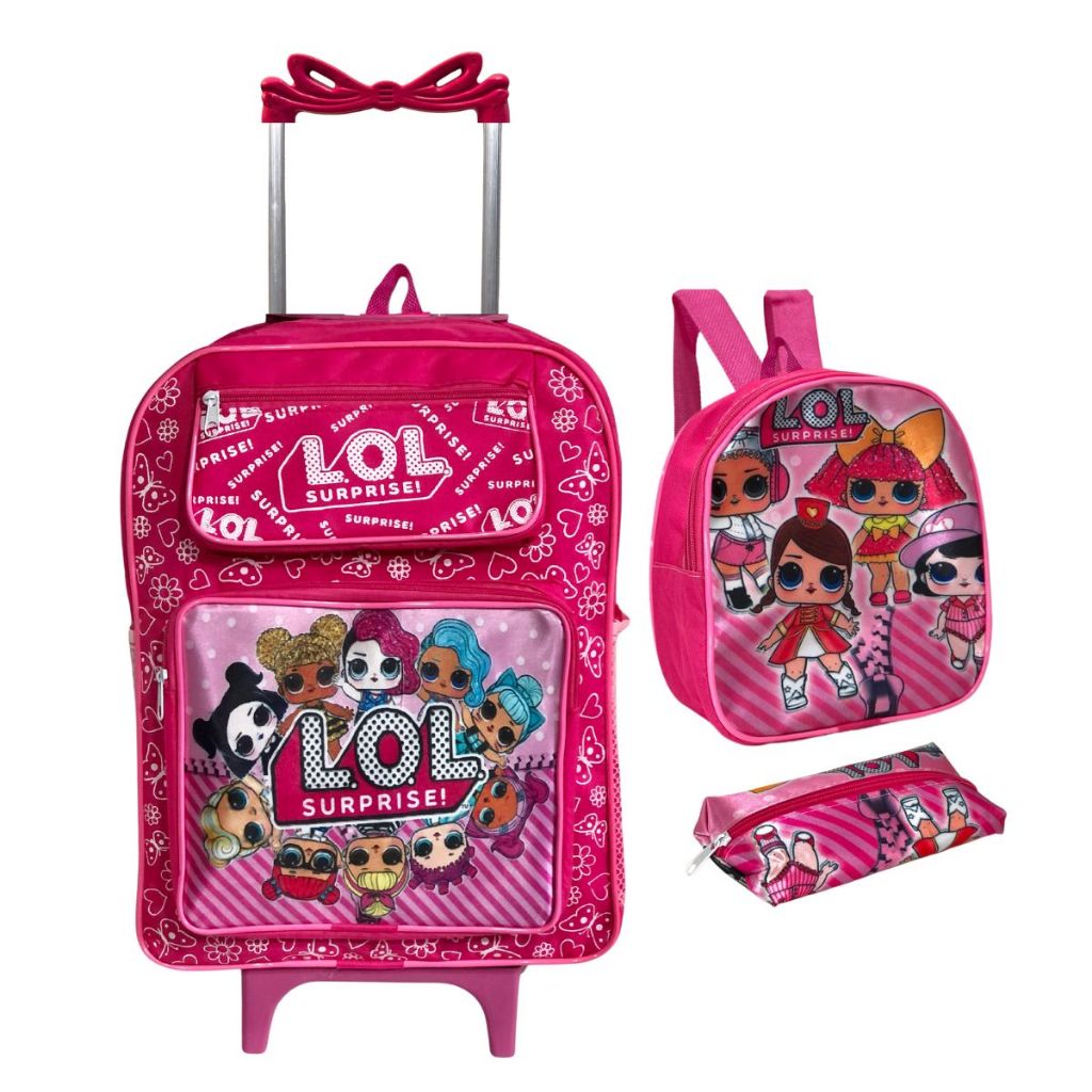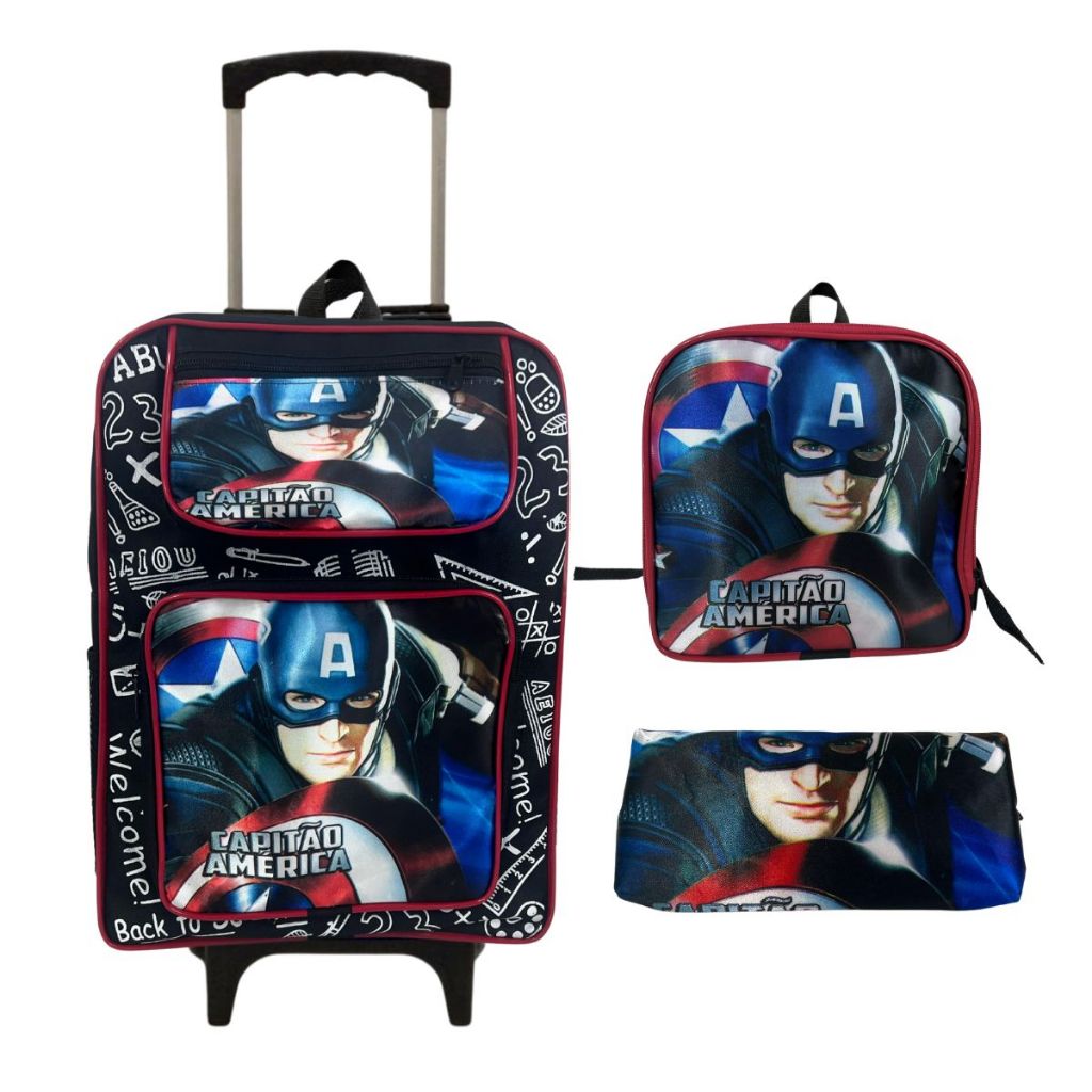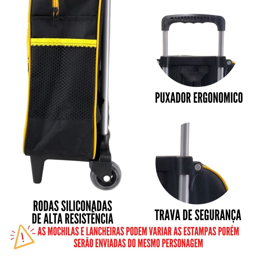 Kit Mochila Escolar Infantil Grande Rodinha Lancheira + Estojo