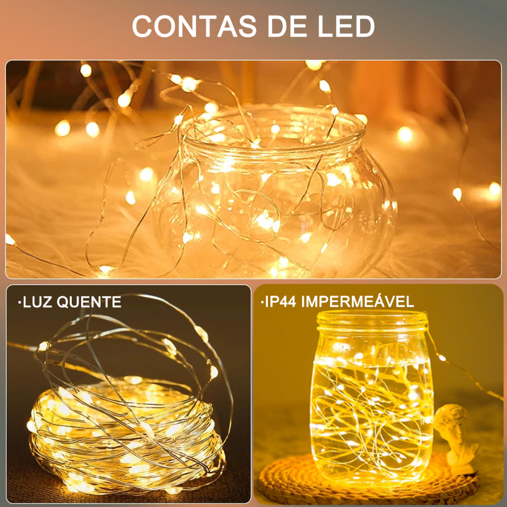 Fio de Fada Led 2 Metros à Prova d'água Fairy Lights Luzes Decorativas Para Festas e Datas Comemorativas