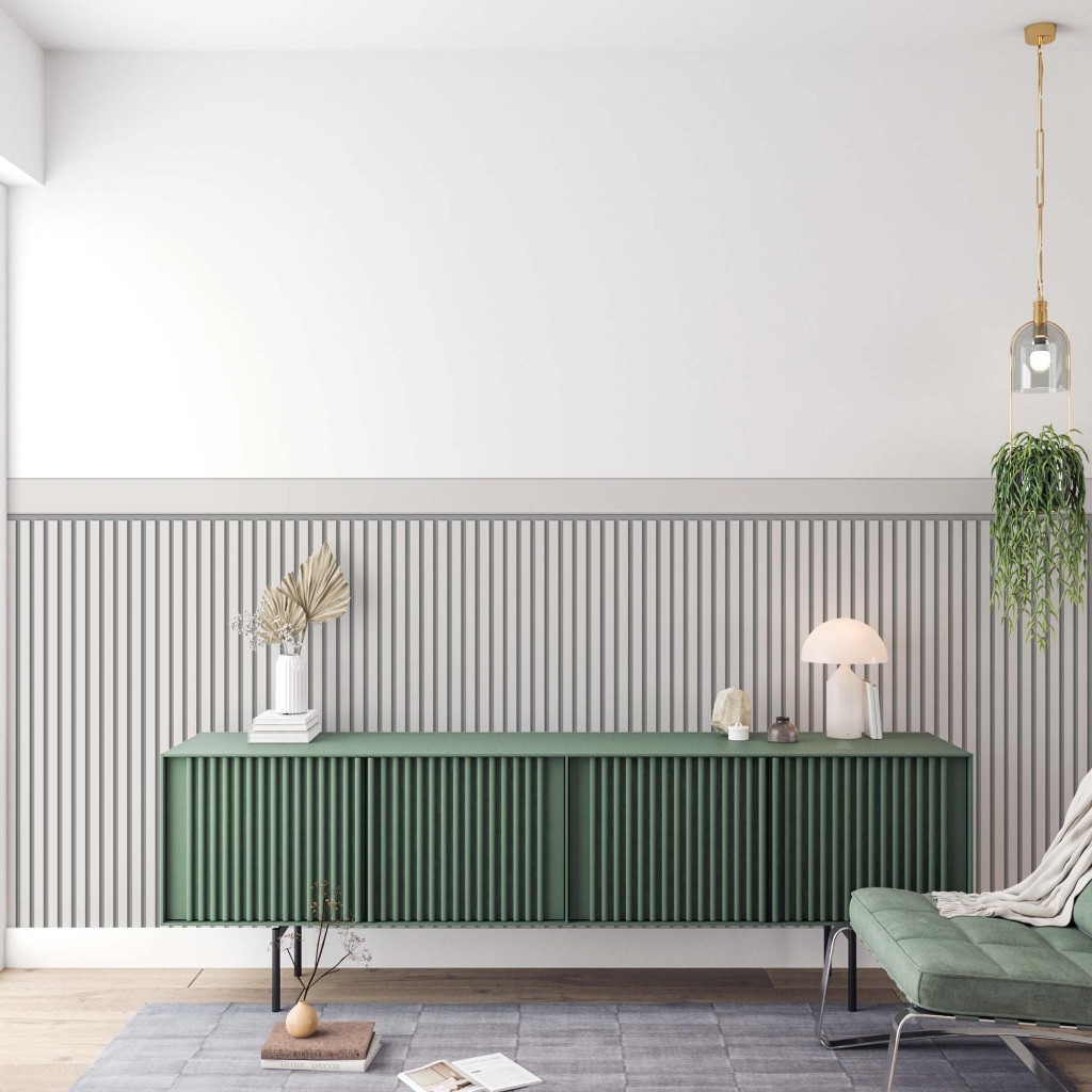 Papel De Parede Ripado Com Faixa Para Meia Parede Vinil Adesivo