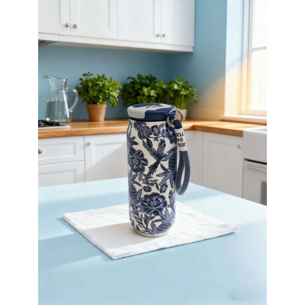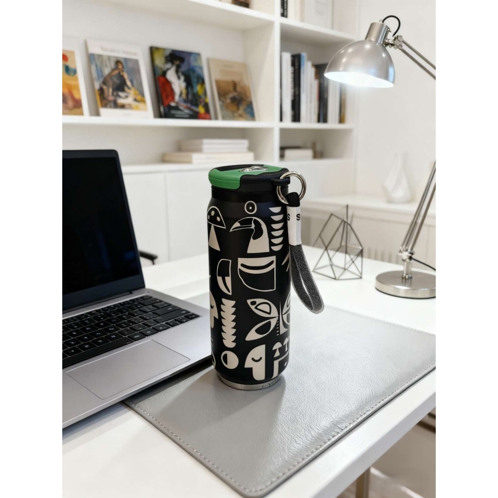 Copo térmica de aço inoxidável com estampa criativa e copo térmico portátil e moderno para água