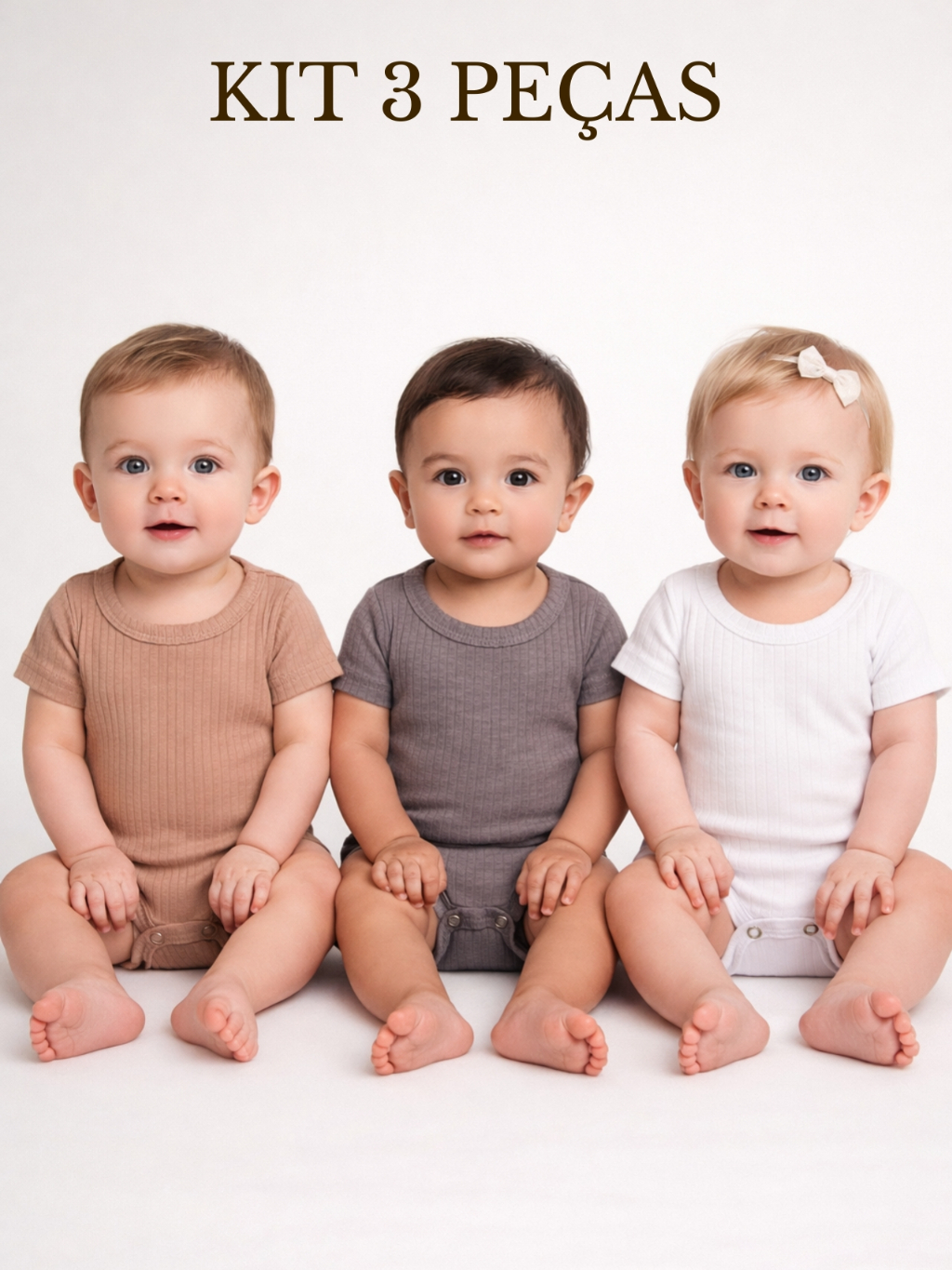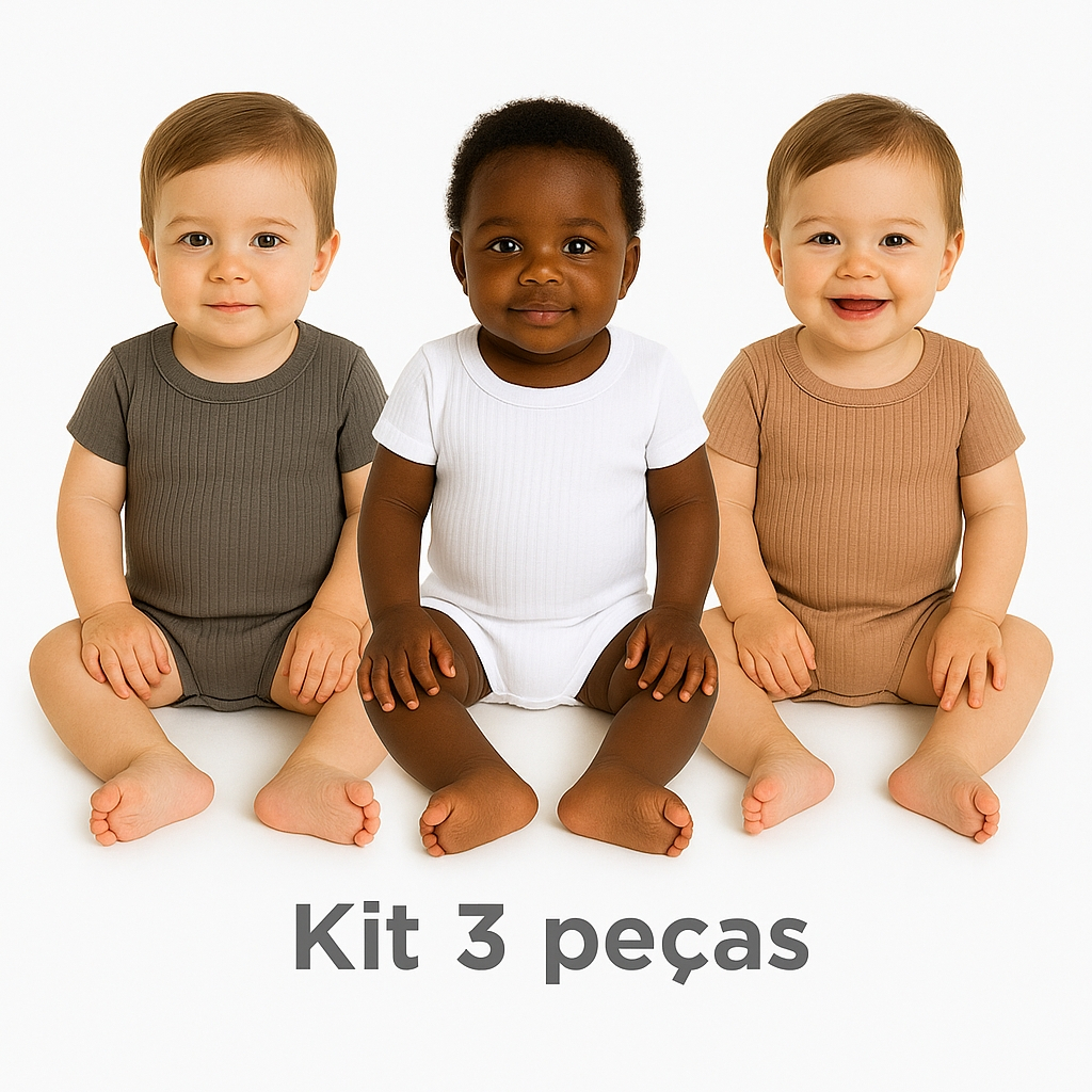 Kit 3 Peças Body Ribana Canelado Bebe Conforto e Praticidade de Alta Qualidade Bory Básico 81