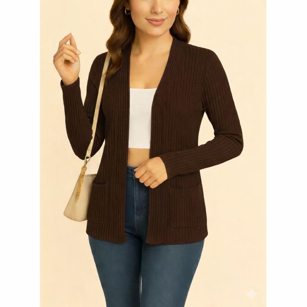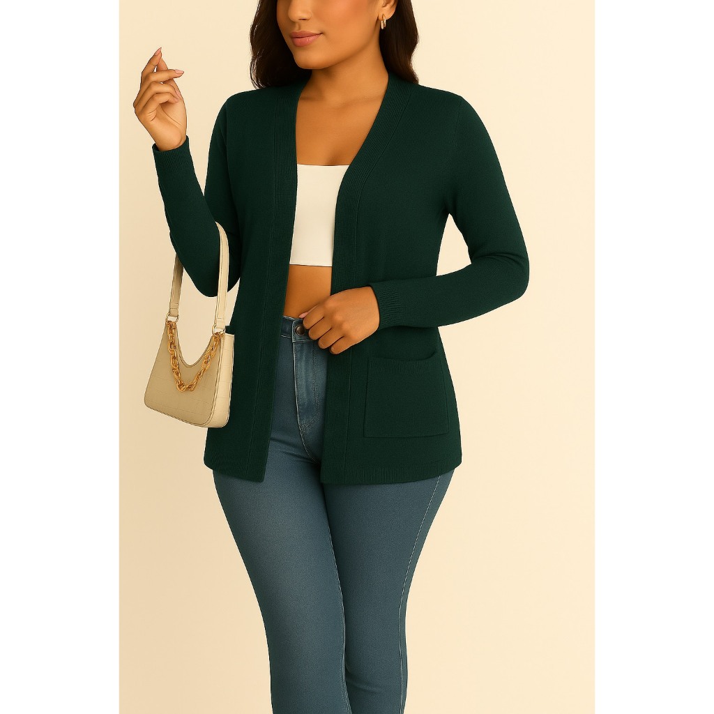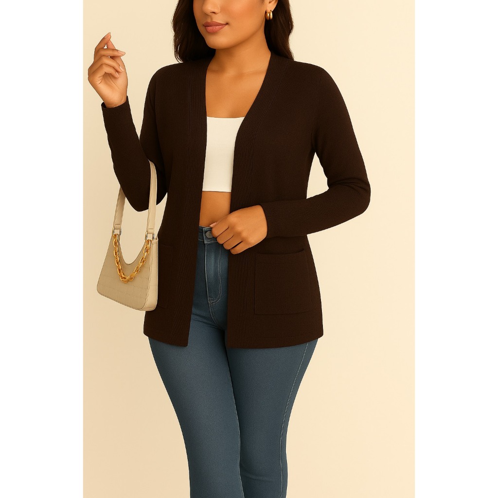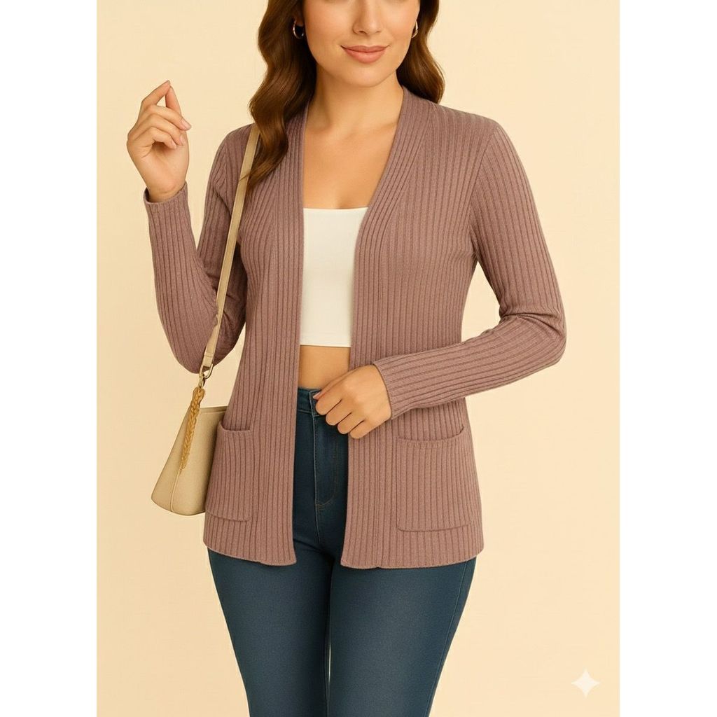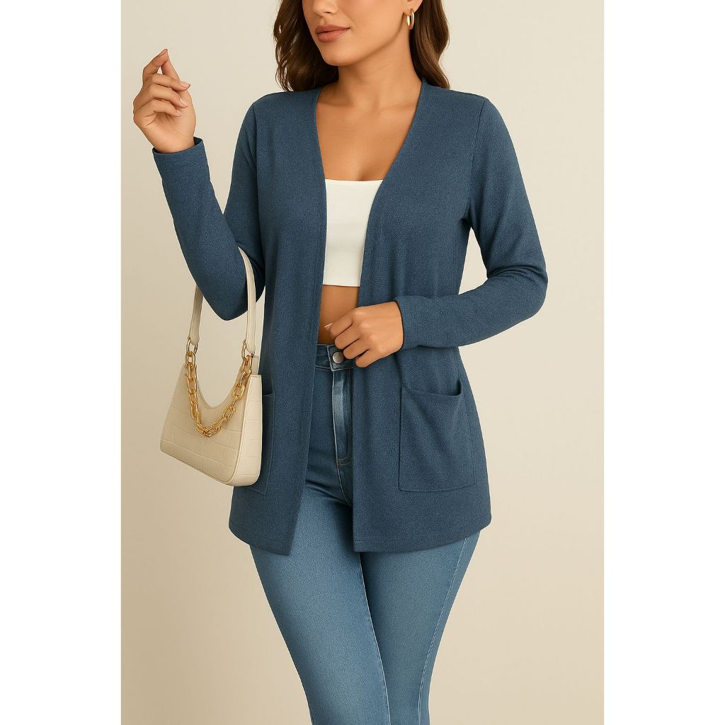 Casaco Cardigan/ Cardigã Feminino Manga Longa Com Bolsos Outono/Inverno