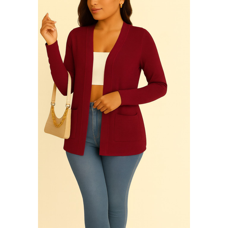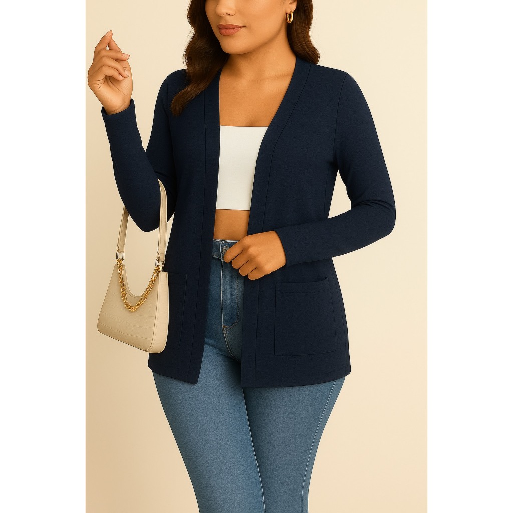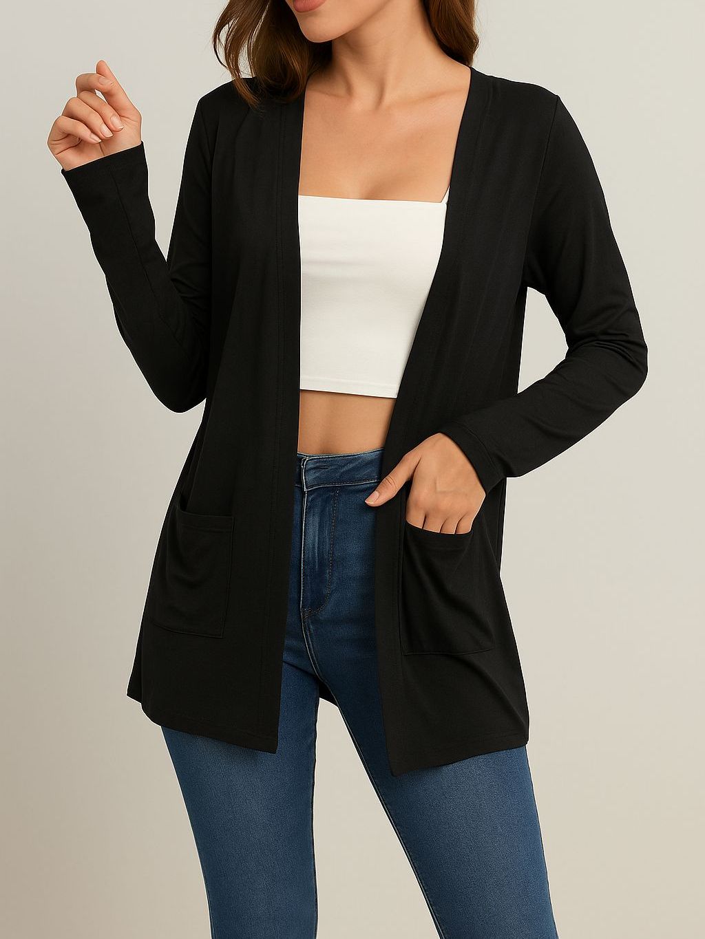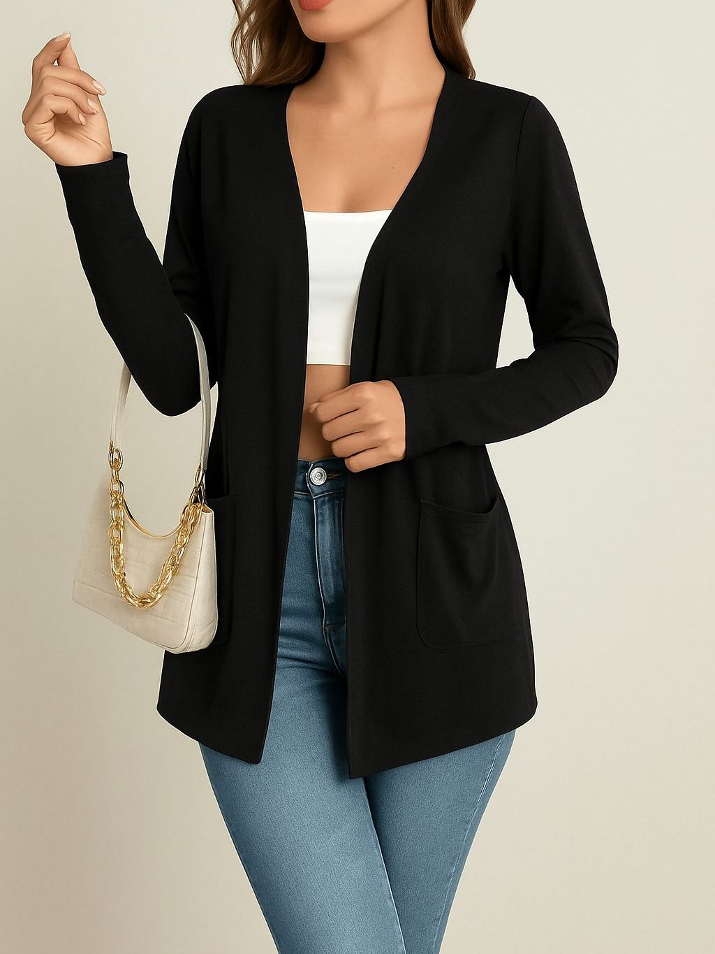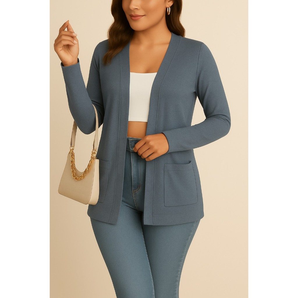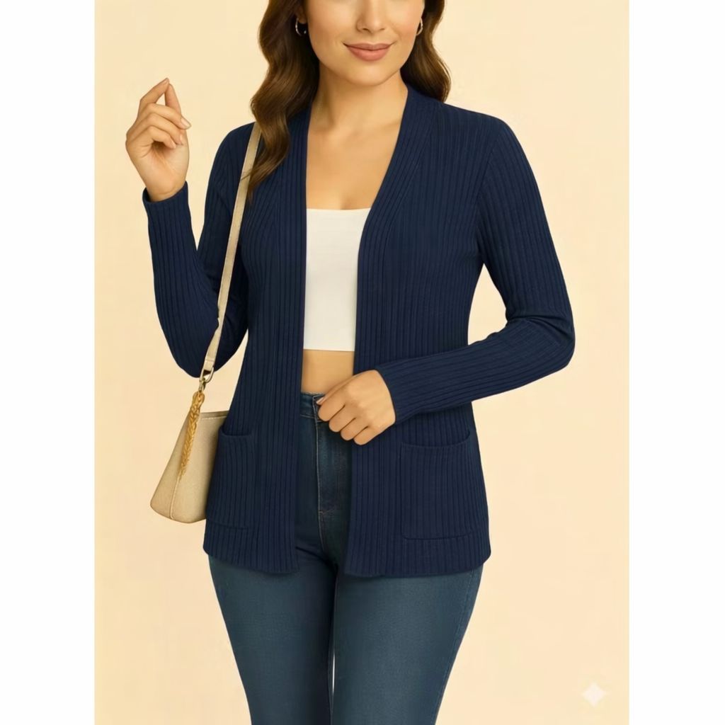 Casaco Cardigan/ Cardigã Feminino Manga Longa Com Bolsos Outono/Inverno