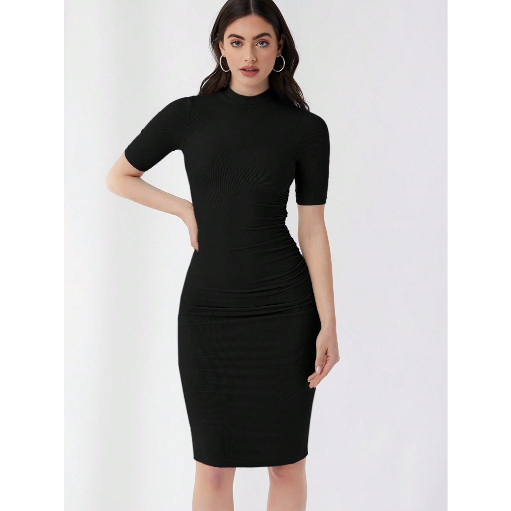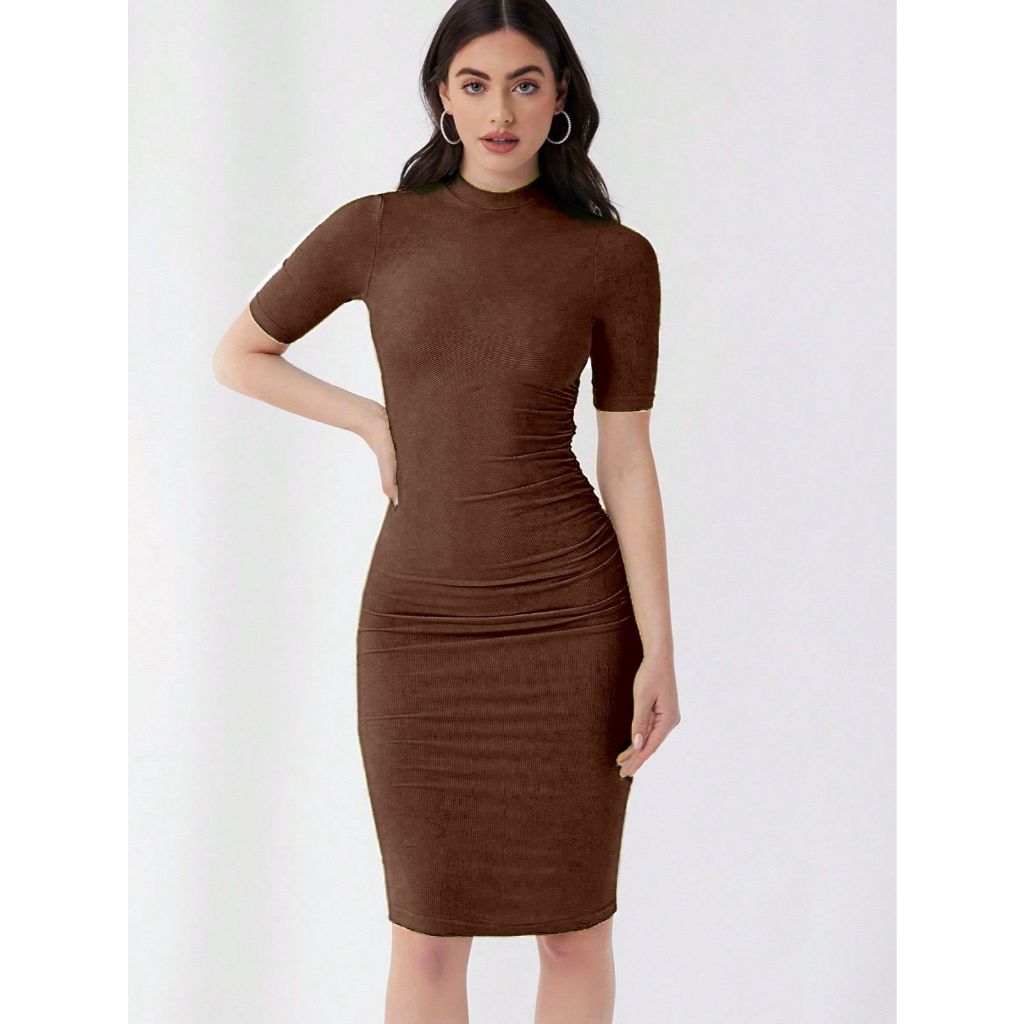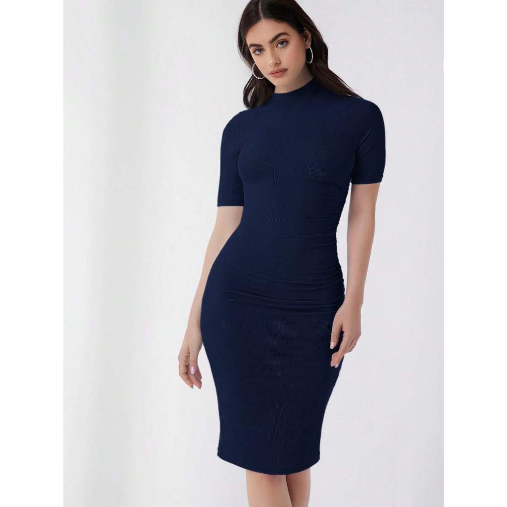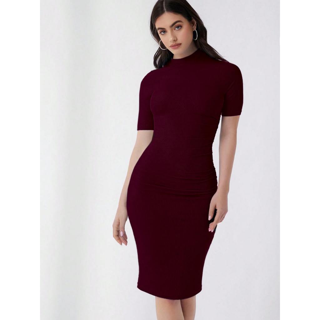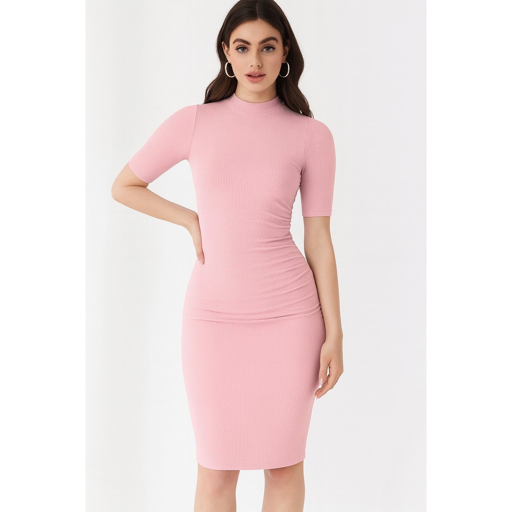 Vestido Feminino Ribana Manga Curta Midi Tubinho