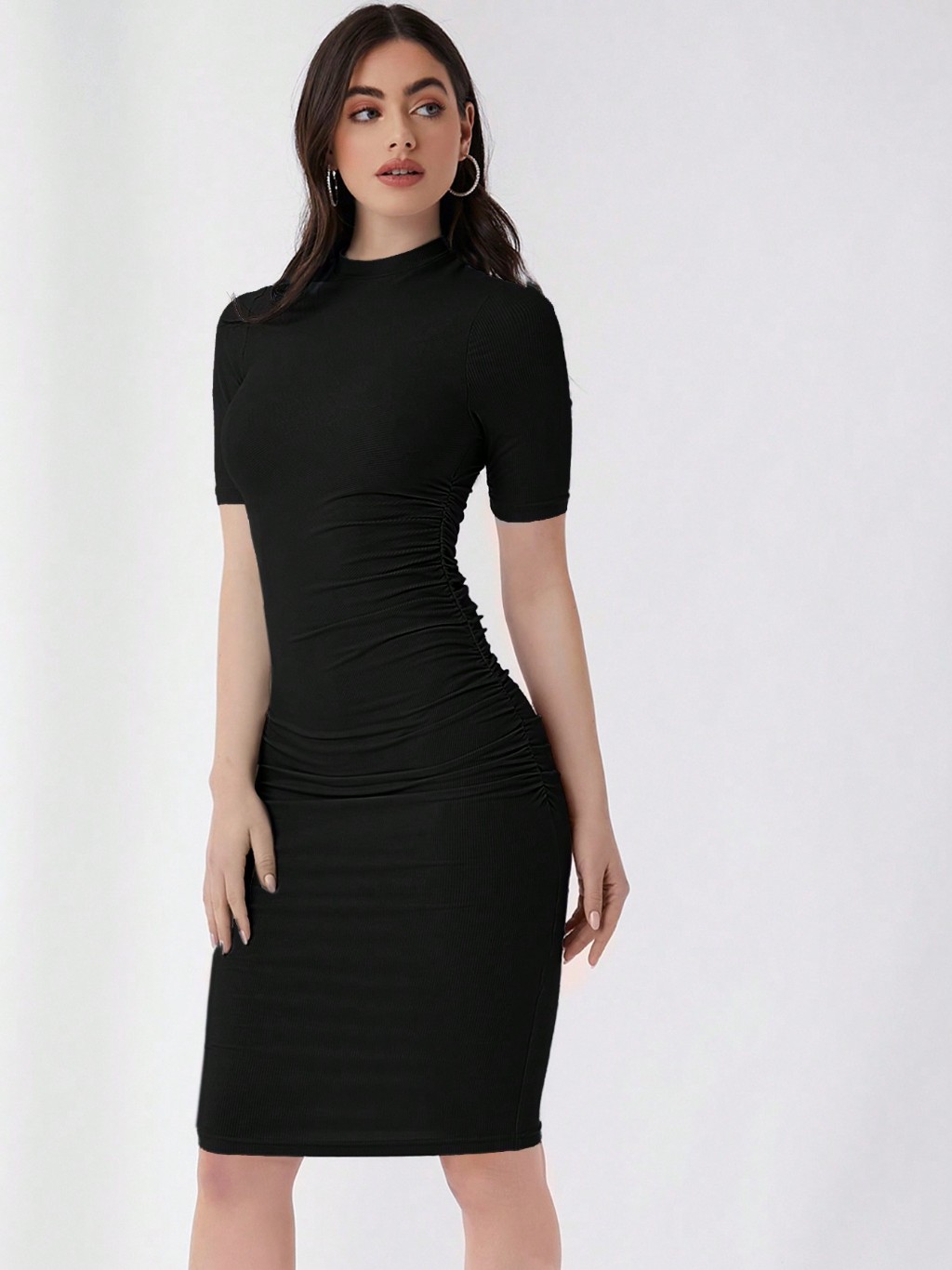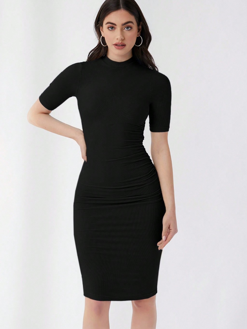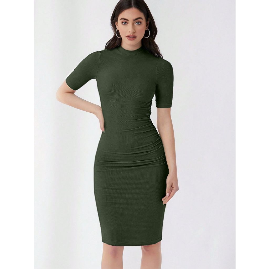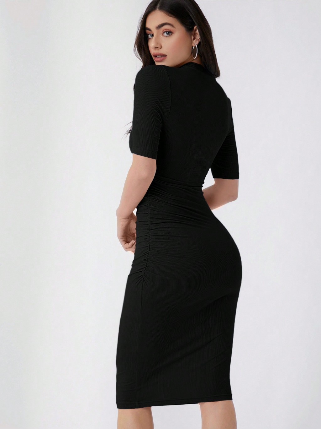 Vestido Feminino Ribana Manga Curta Midi Tubinho