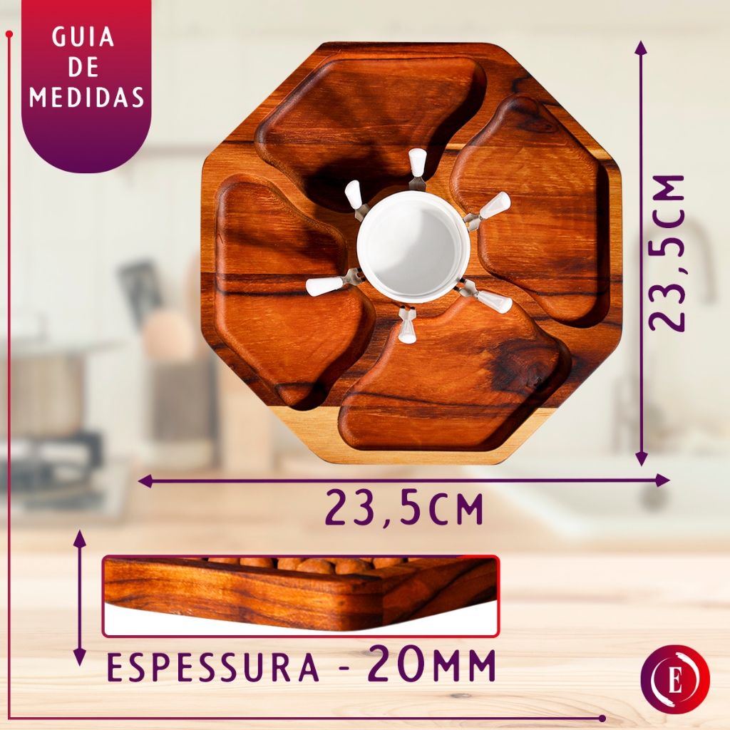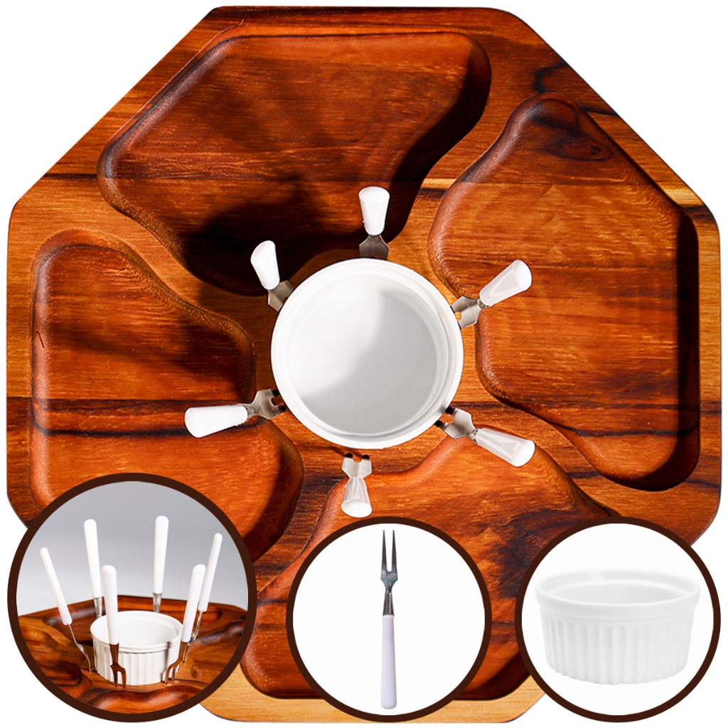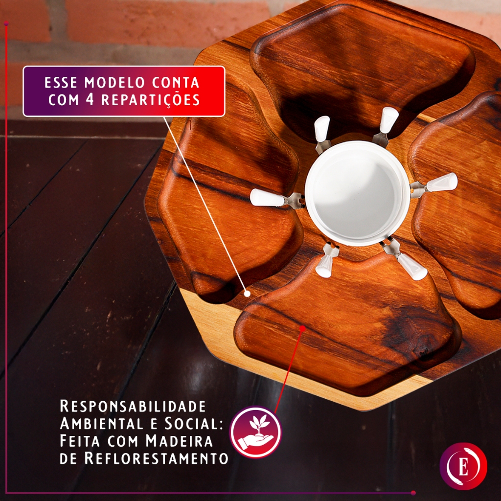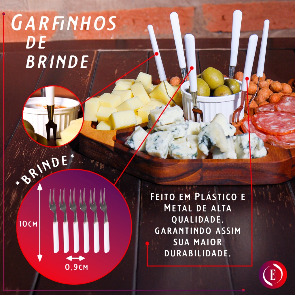 Petisqueira Tábua de Frios e Petiscos 4 Divisórias com Kit de Garfos e Ramekin Servir Petisco Amigos