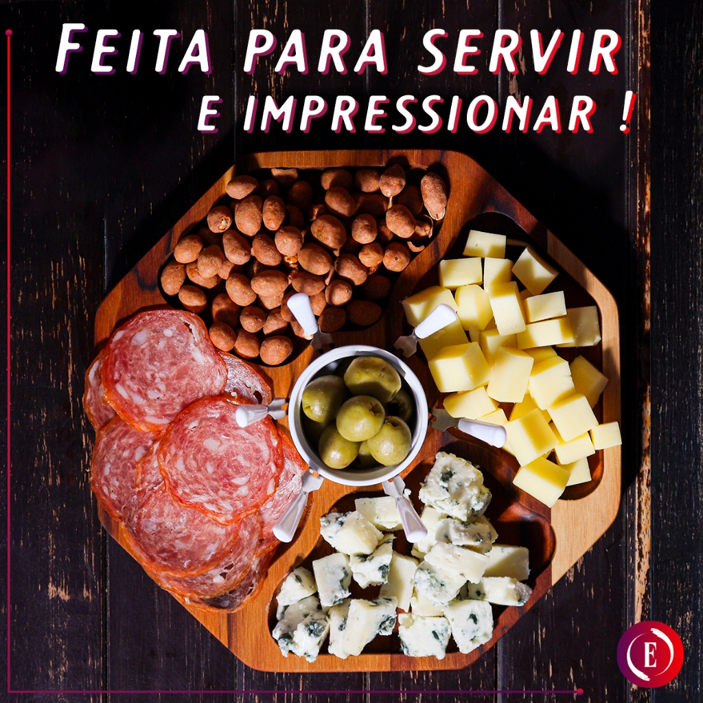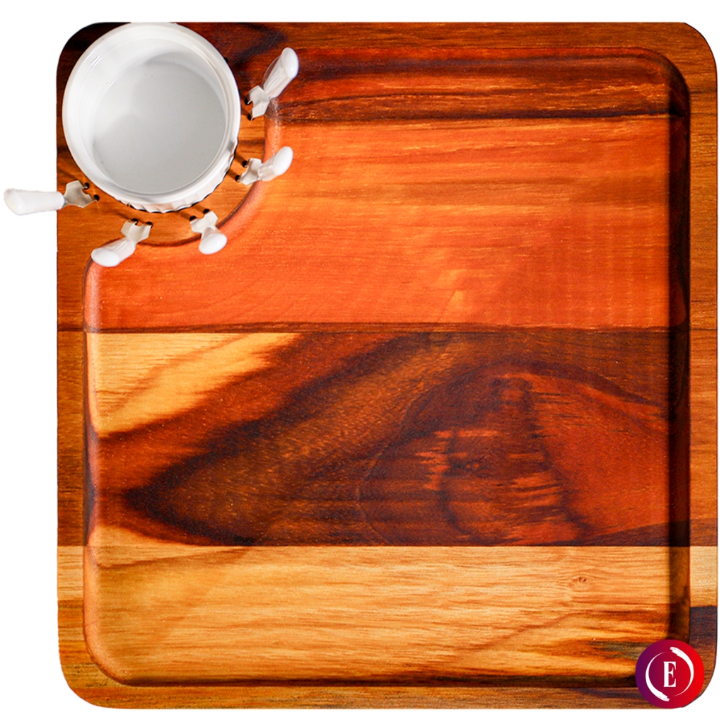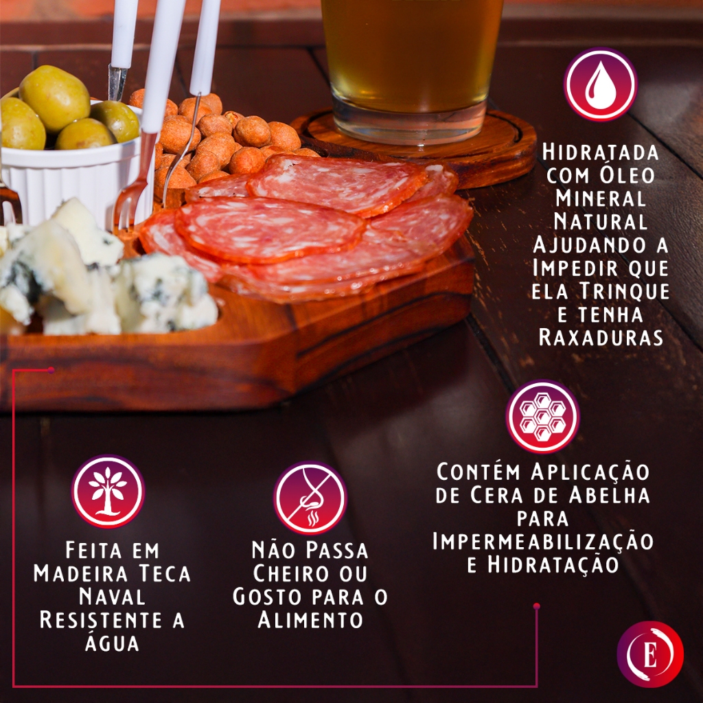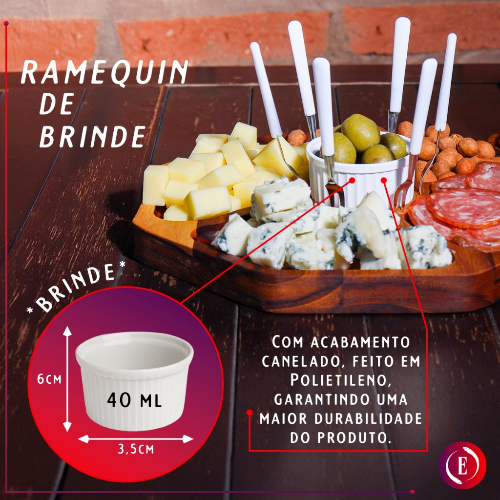 Petisqueira Tábua de Frios e Petiscos 4 Divisórias com Kit de Garfos e Ramekin Servir Petisco Amigos