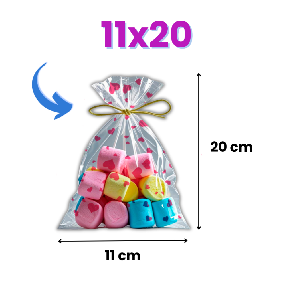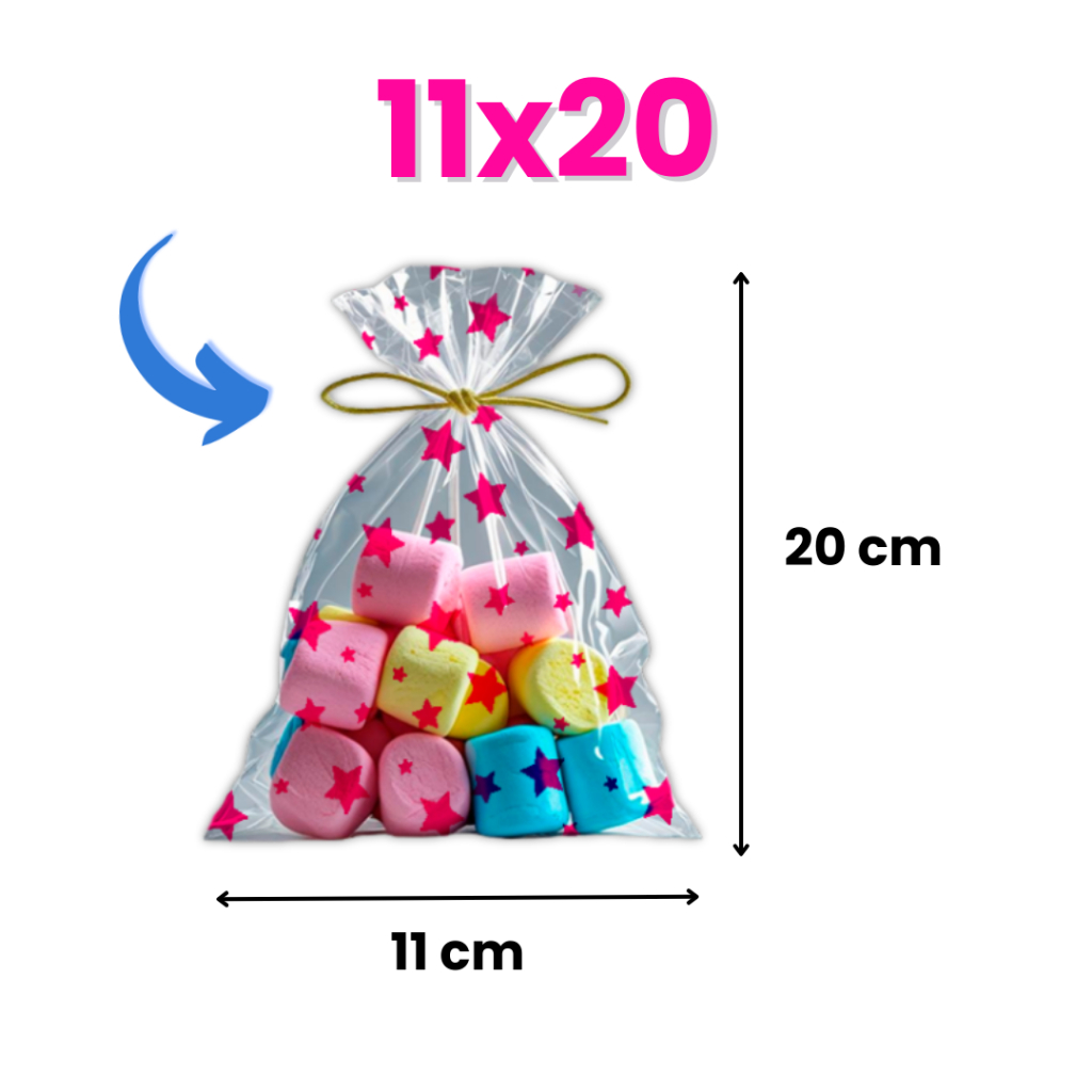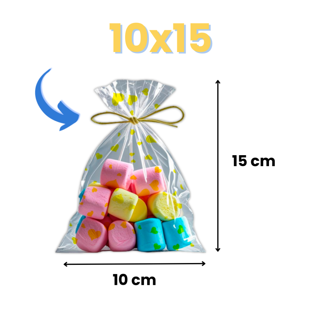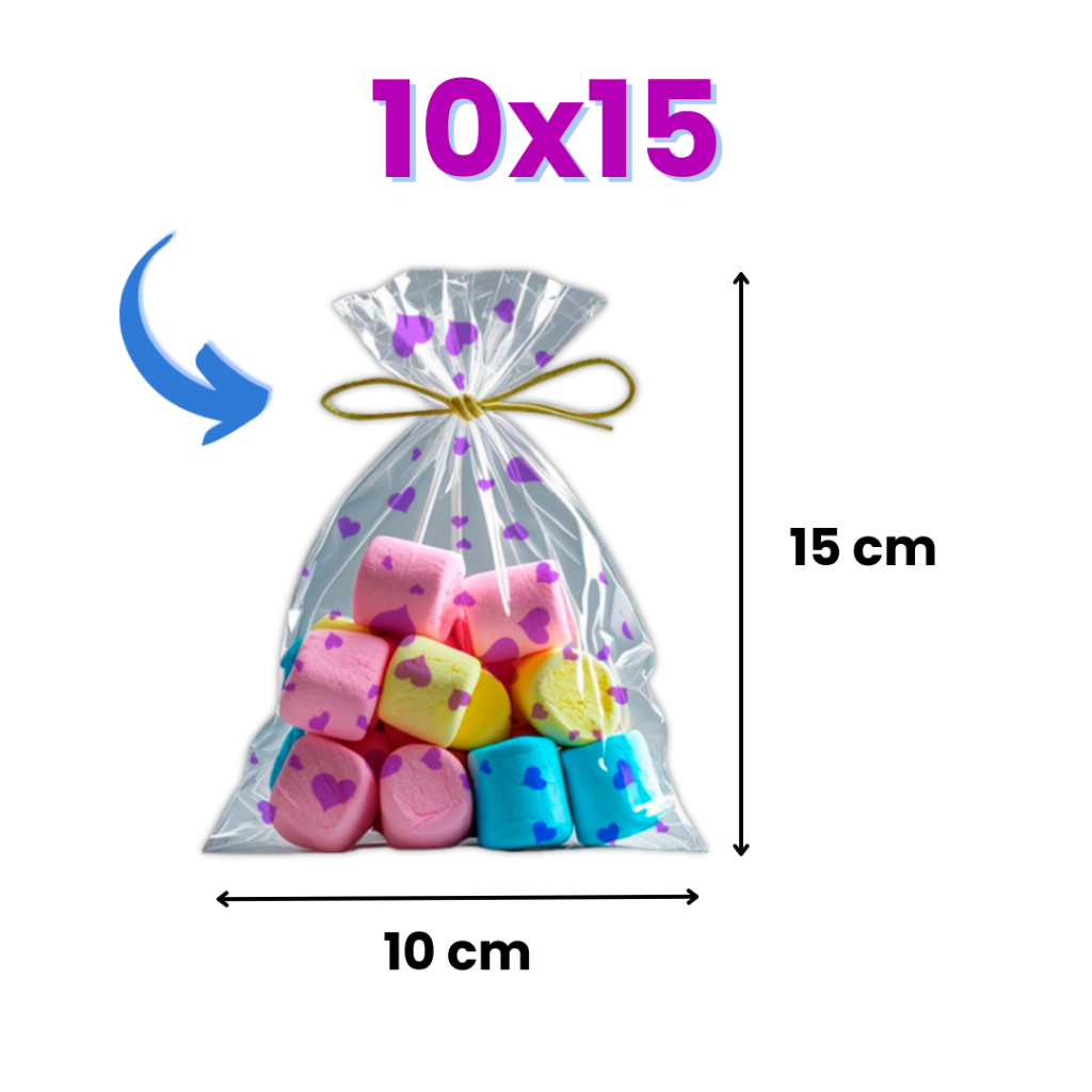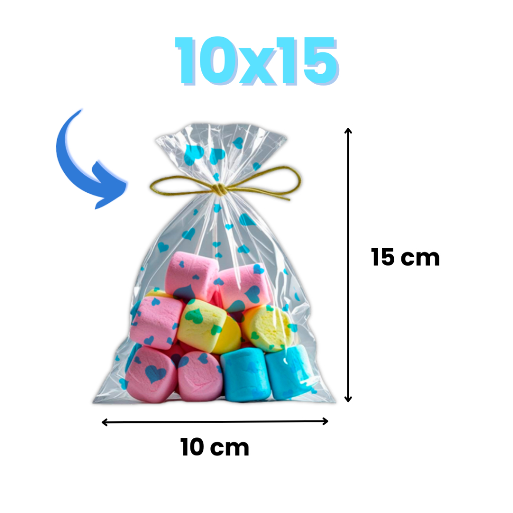50 Saquinhos Celofane Plásticos Transparentes Decorados 10x15cm 11x20cm Para Lembrancinha Festa
