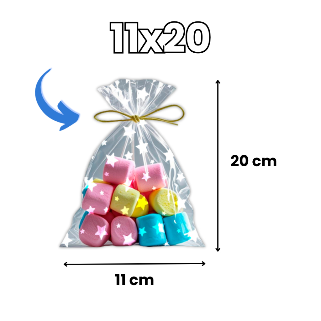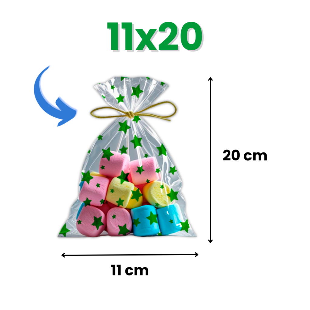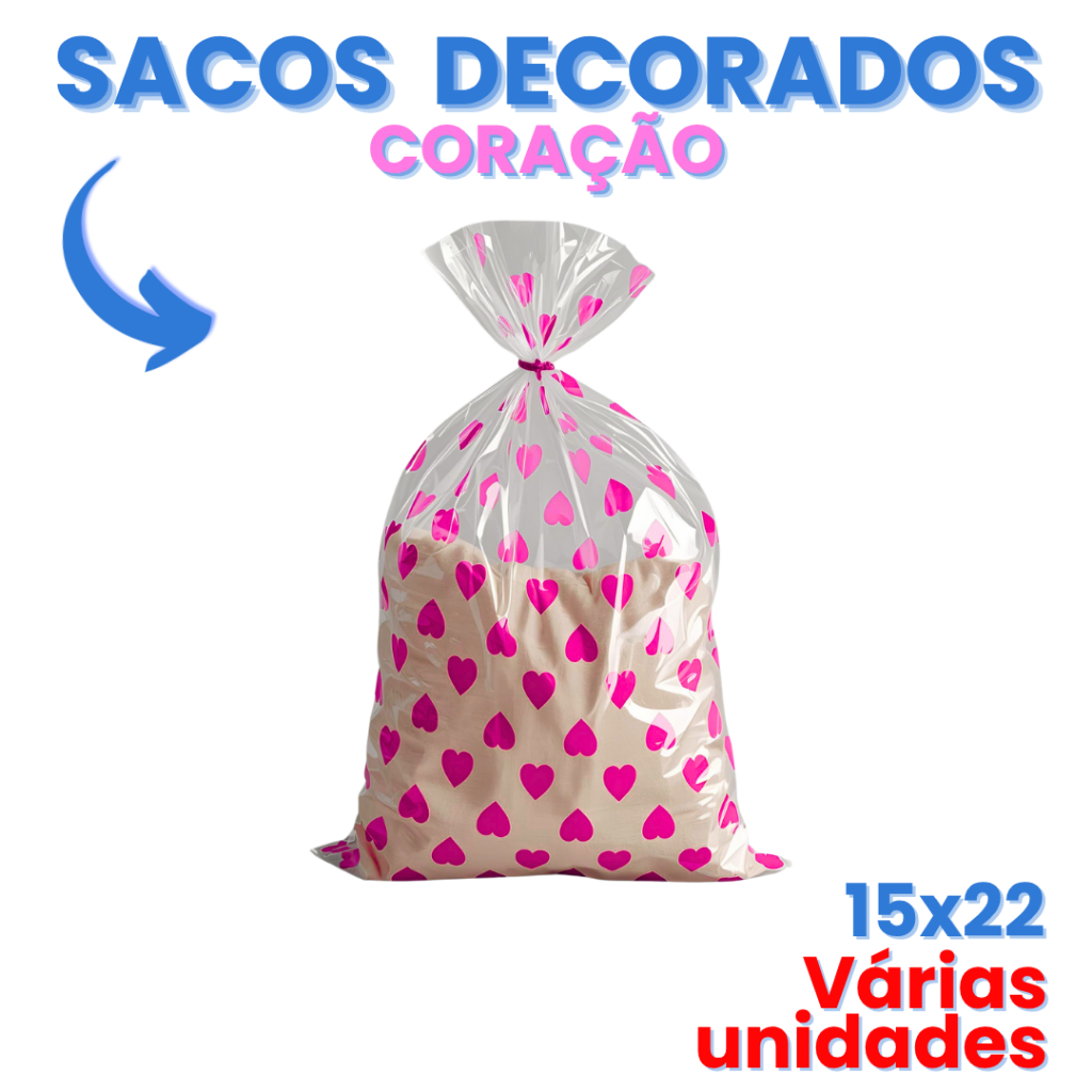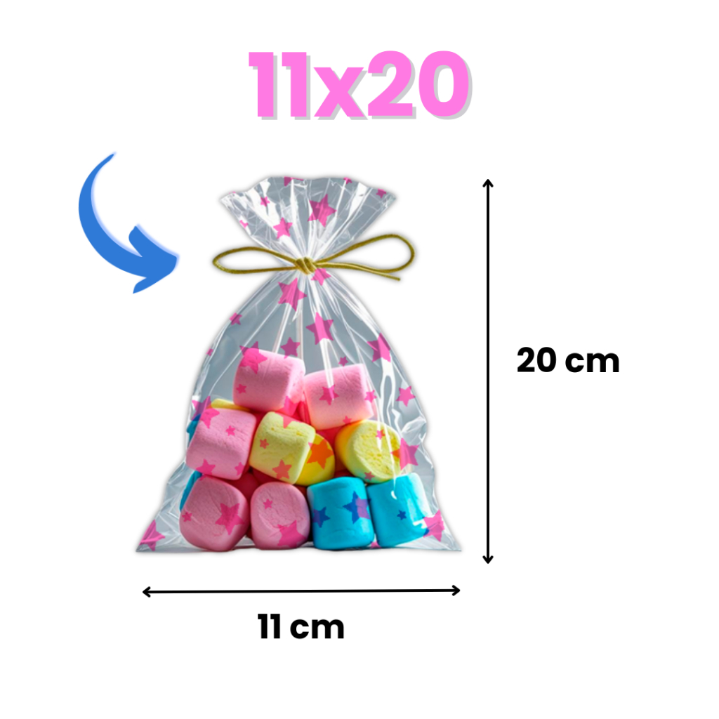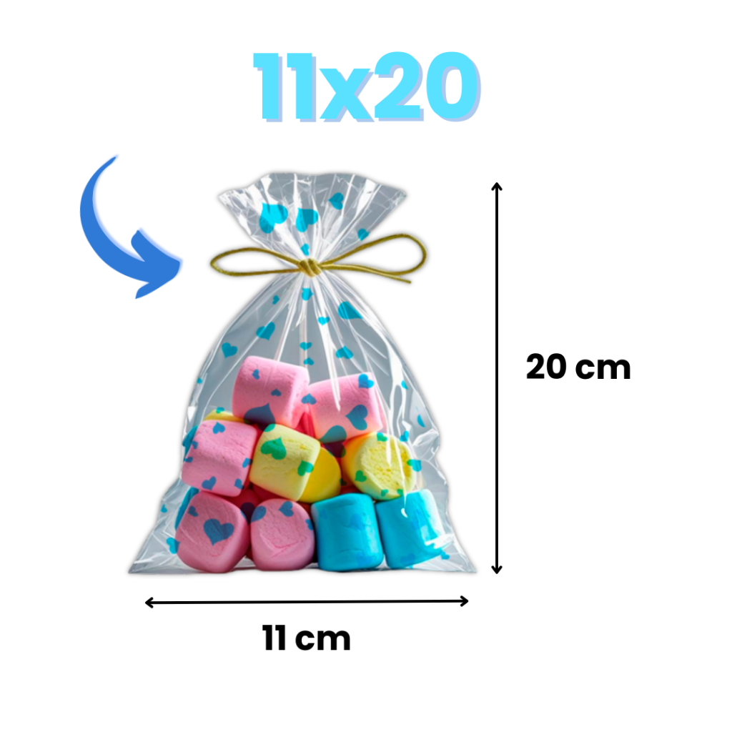 50 Saquinhos Celofane Plásticos Transparentes Decorados 10x15cm 11x20cm Para Lembrancinha Festa