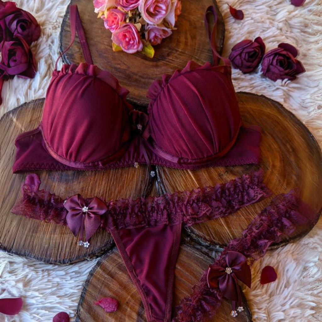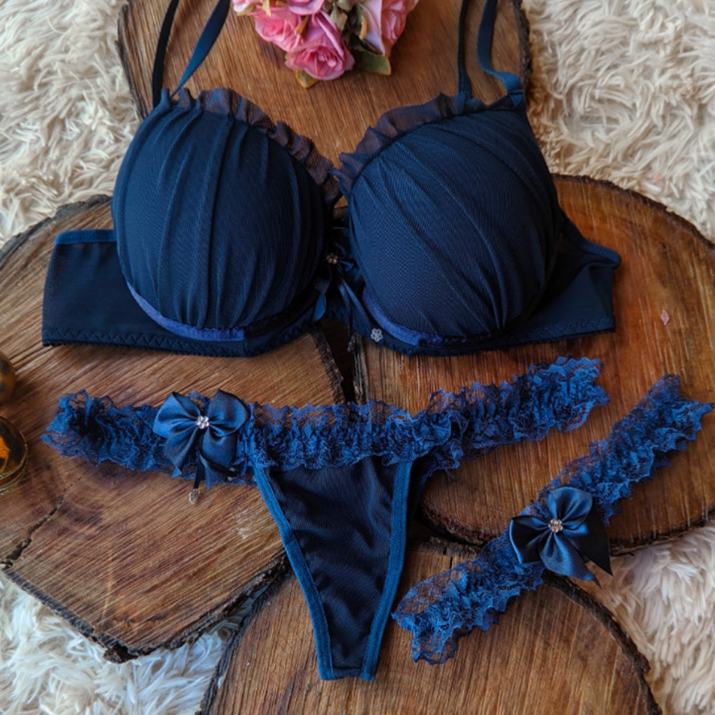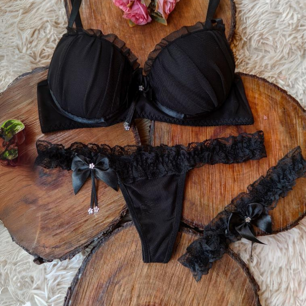 Conjunto Sutiã e Calcinha Sensual Fio Dental Lingerie Com Perneirinha