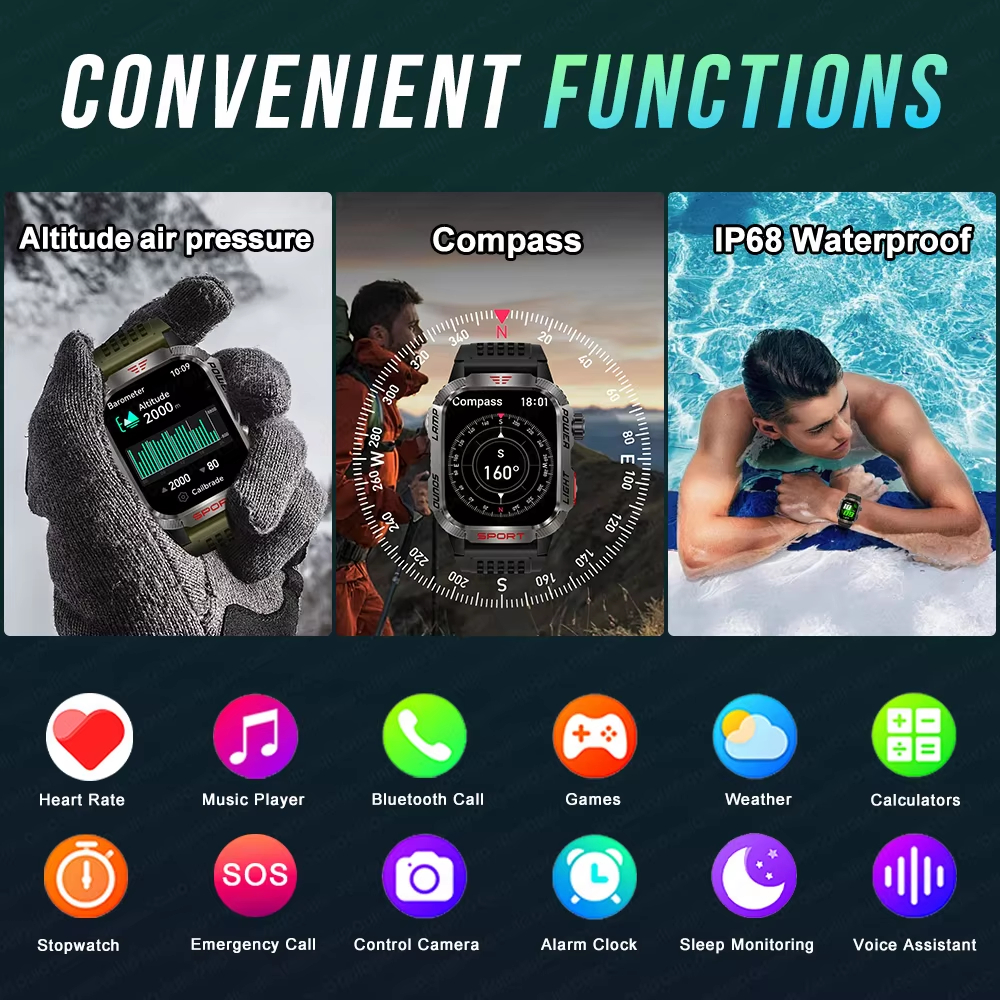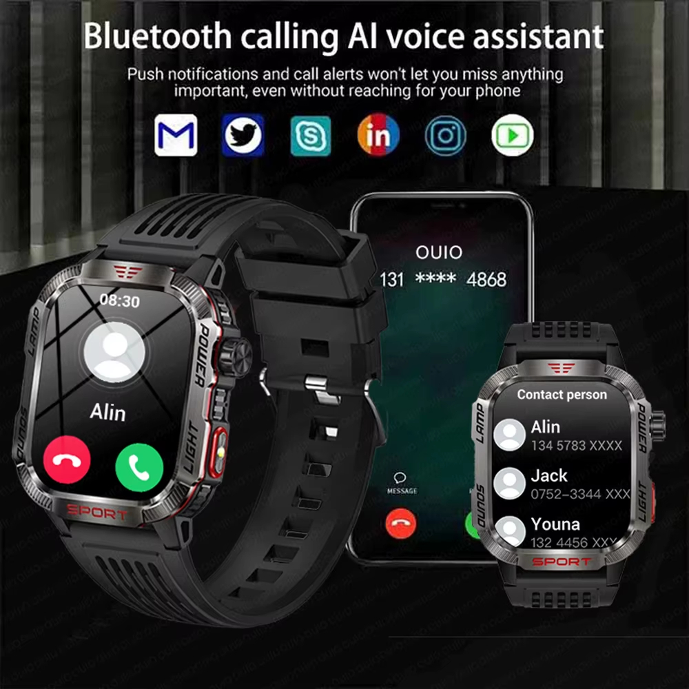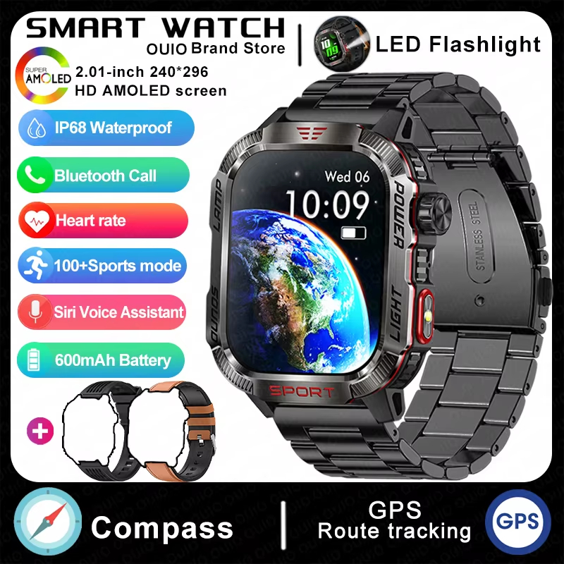 2025 New Men's GPS Smartwatch com LED Light 600 mAh Bluetooth Call Sports Waterproof Smart Watch