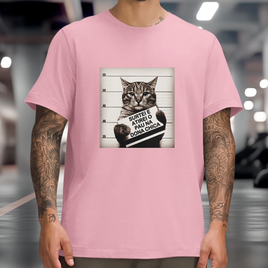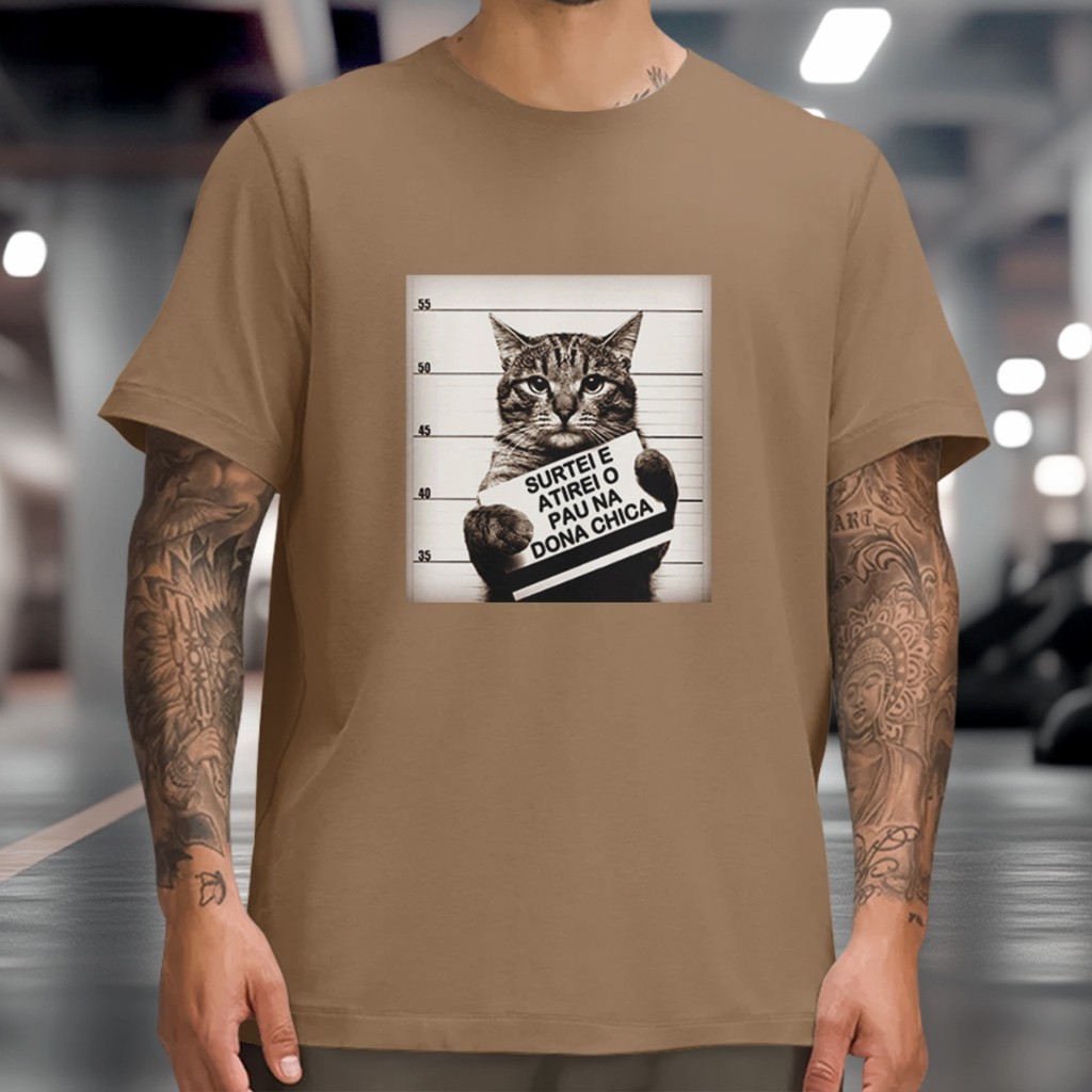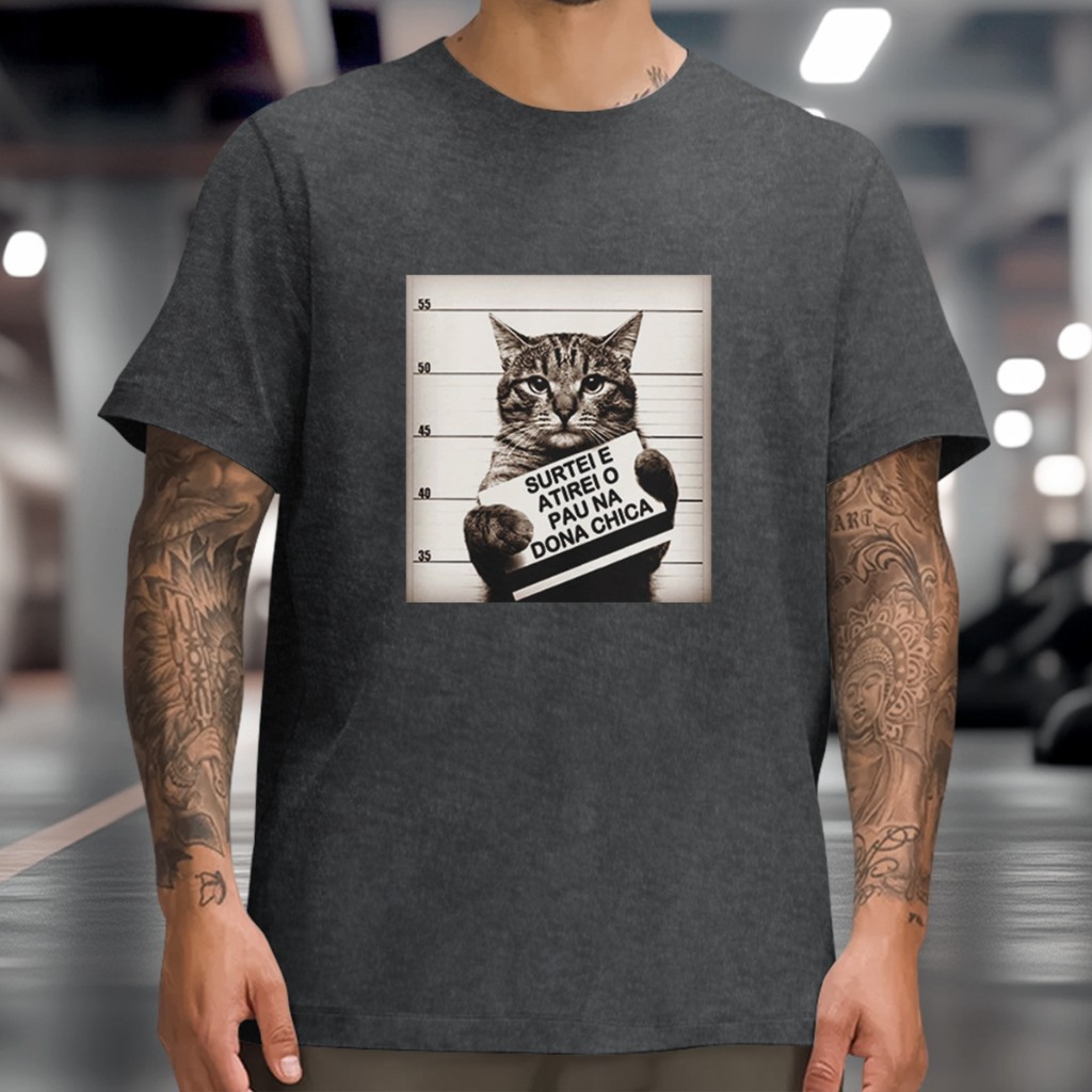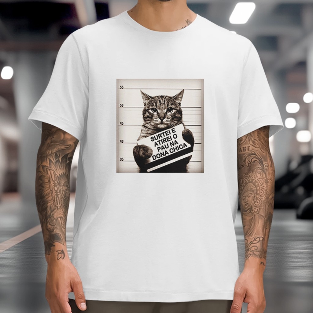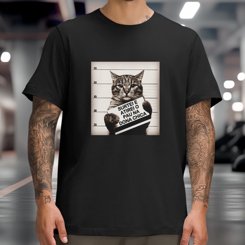 Camiseta Gato Surtei E Atirei O Pau Na Dona Chica Camisa Meme Cat Estampa Divertida