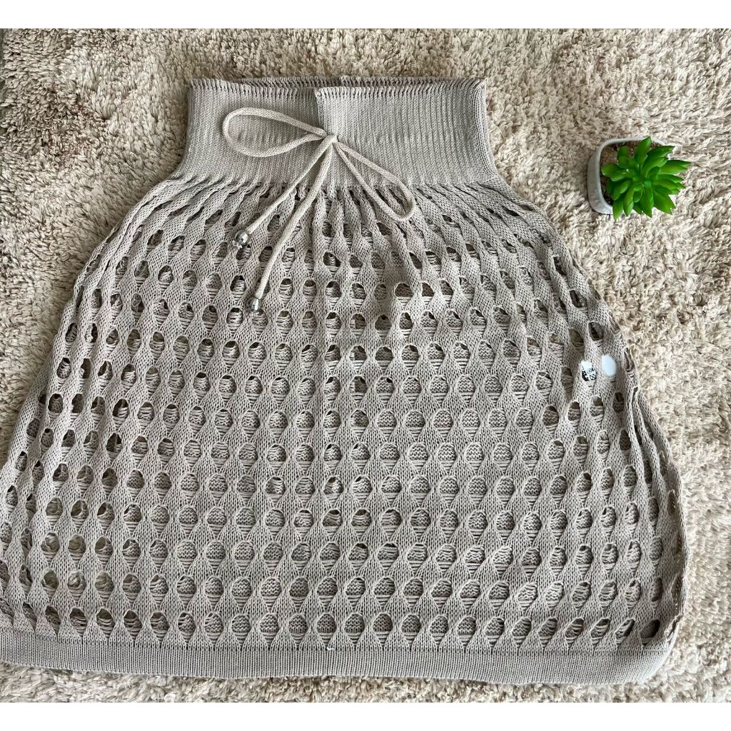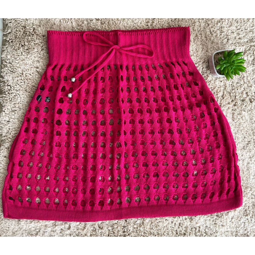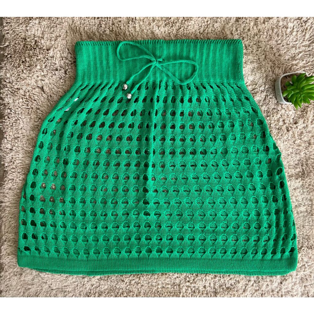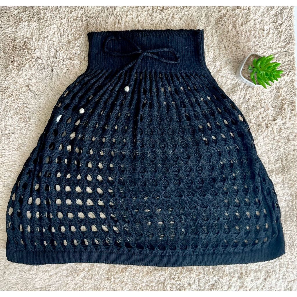 Saia Saída de Praia Curta Rendada Tricot Ponto Crochê com Cordão e Elástico no Cós Moda Verão