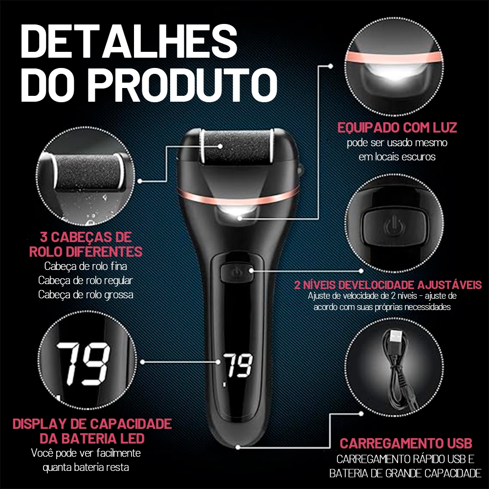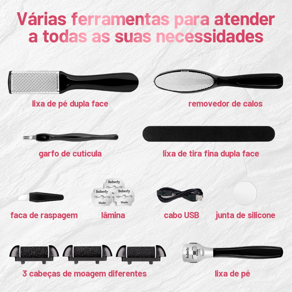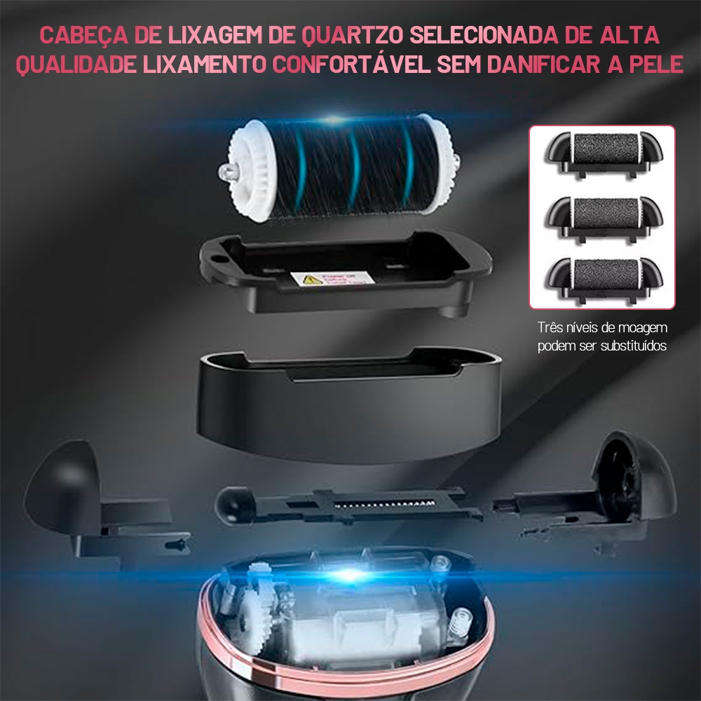 kit Lixa eletrica para pés Removedor Calos Esfoliante Elétrico Profissional Premium Com Tela Digital