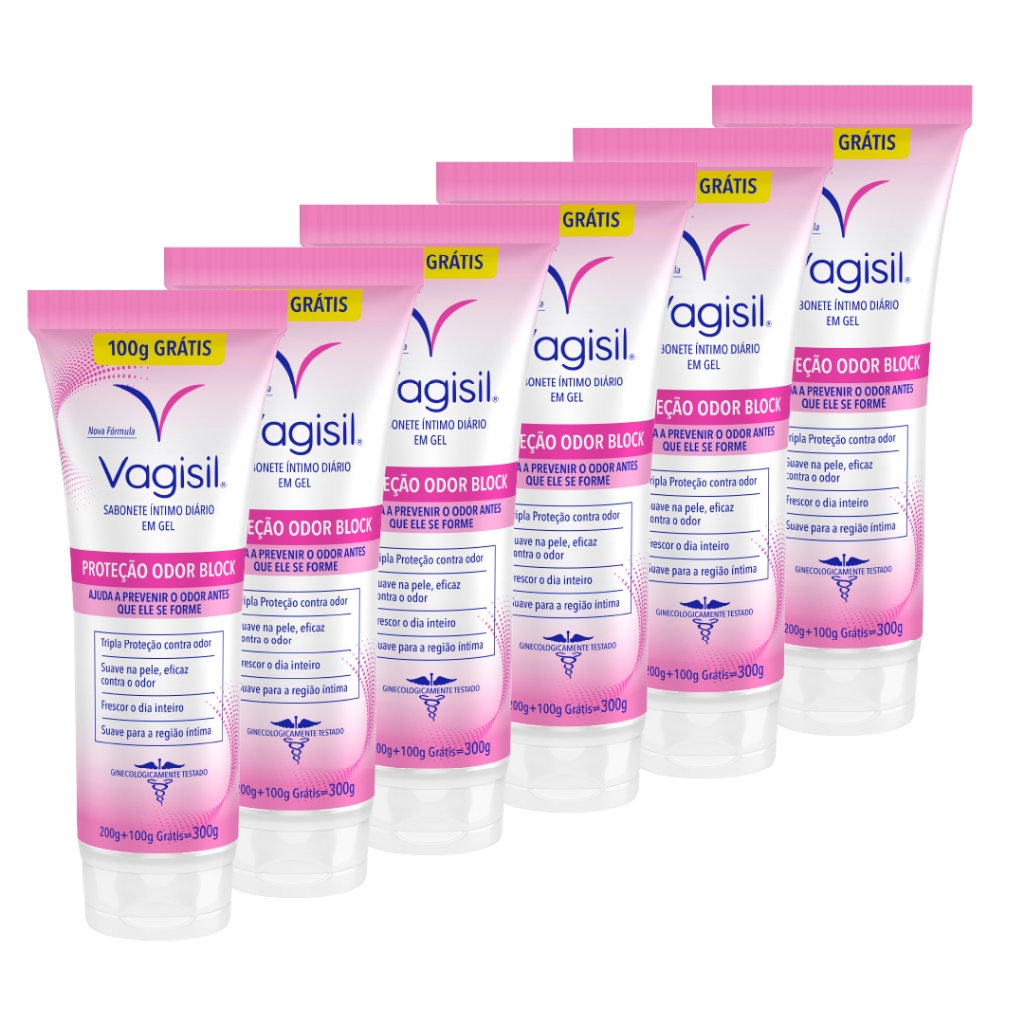 Kit 6x Vagisil Sabonete Líquido Íntimo Odor Block 200 + 100g Grátis
