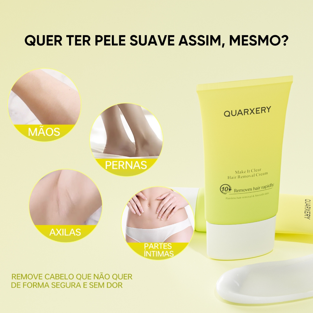 QUARXERY Creme Depilatório Indolor Pernas, Braços, Axilas & Linha Bikini 2unidad