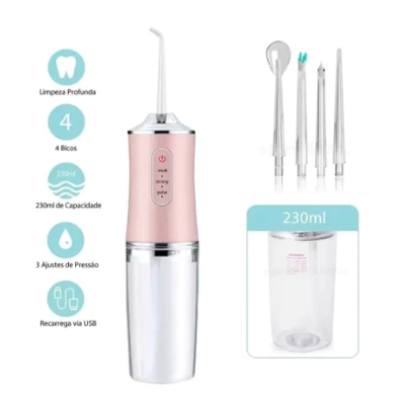 Irrigador Oral Jato D'água Limpeza Profunda Higiene Bucal e Dental Recarregável