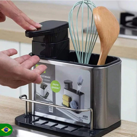 Porta Detergente Dispenser Sabão Liquido Esponja Bucha Inox