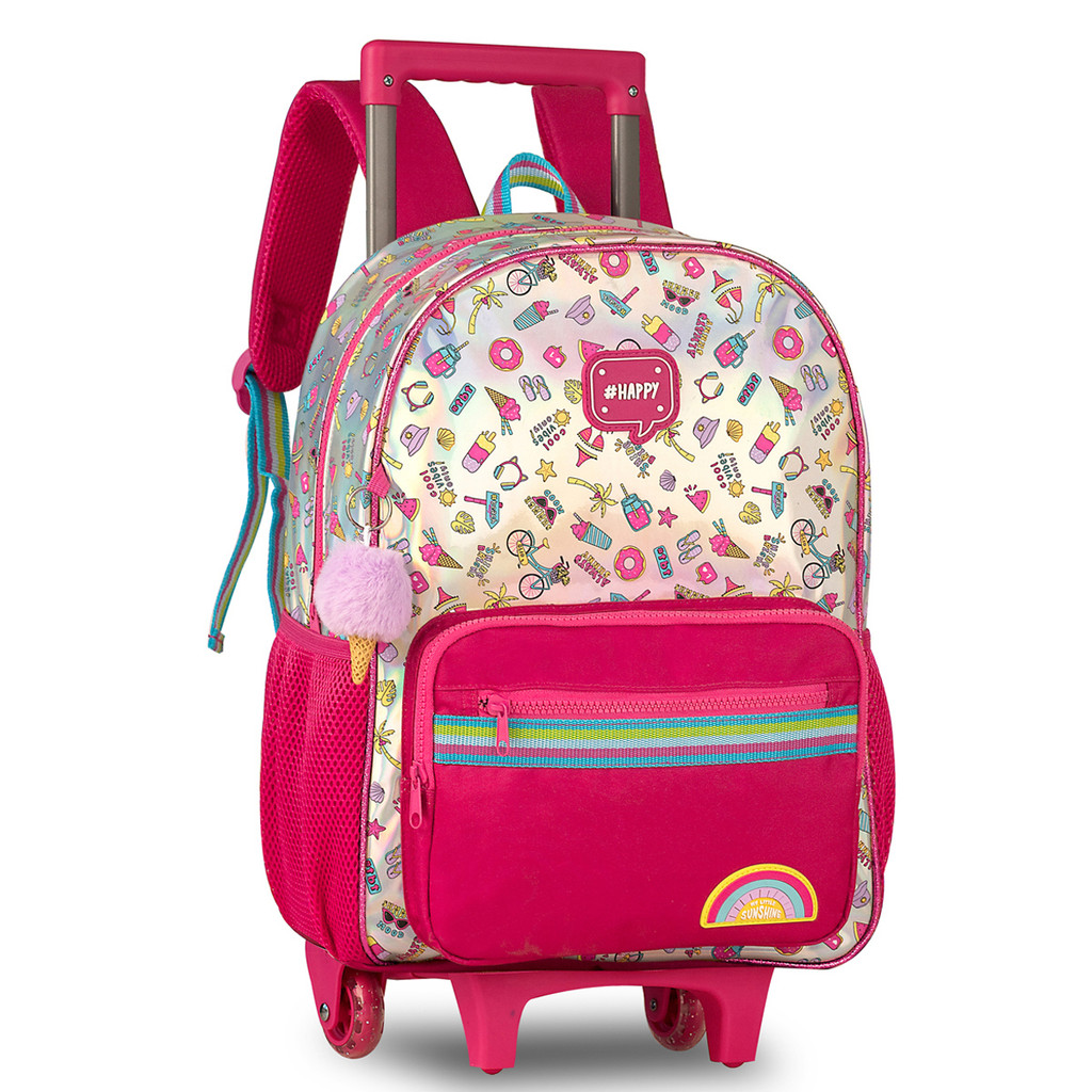 Kit Mochila Carrinho Holográfica Escolar Meninas Clio 2026