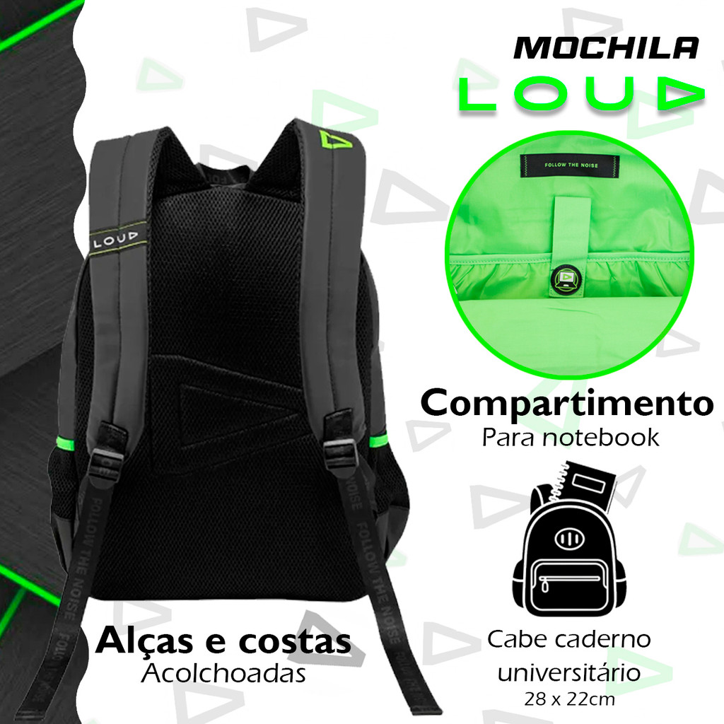 Kit Mochila Estojo Gamer Loud Menino Escolar Juvenil Garrafa
